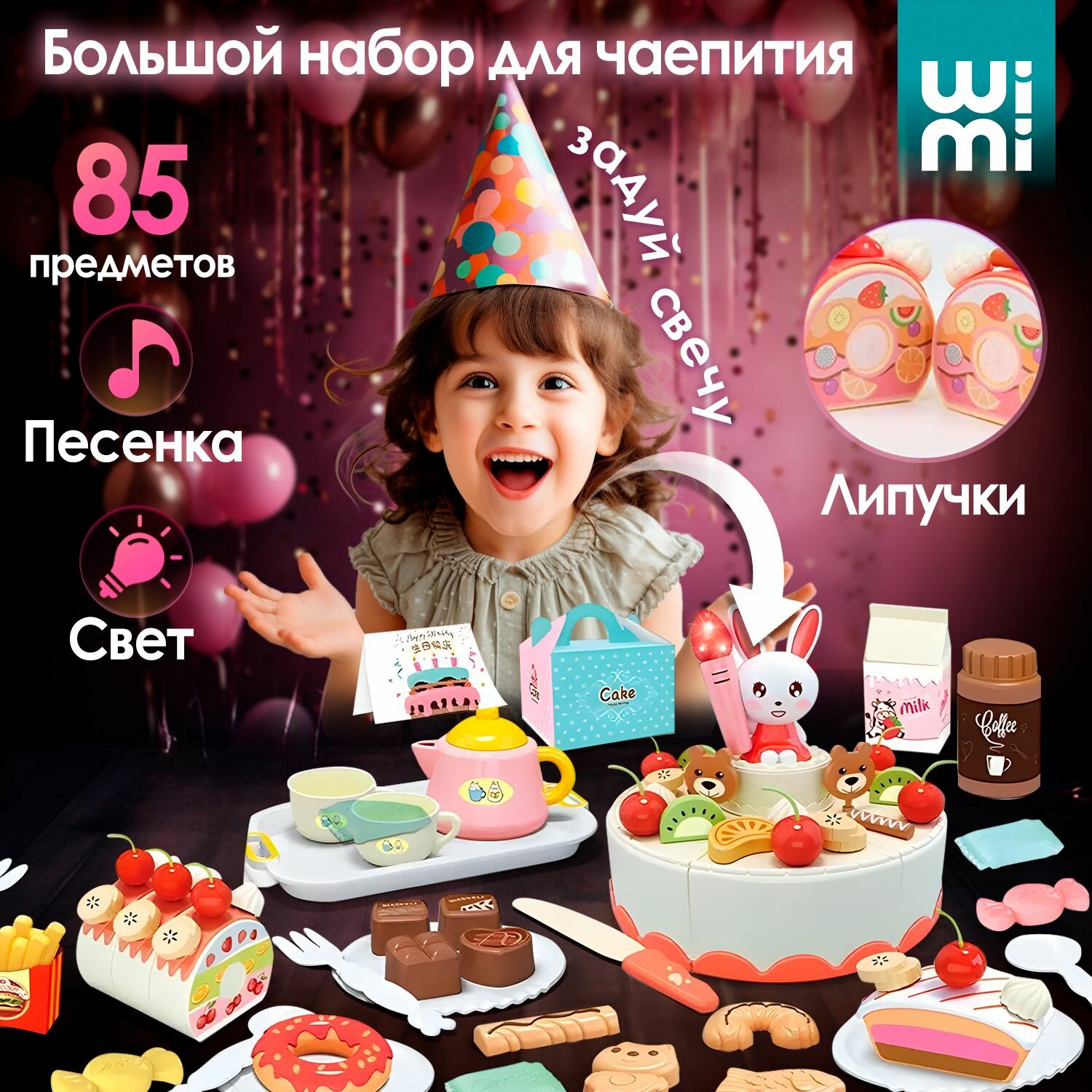 Торт игрушечный WiMi с посудой и продуктами информация:
