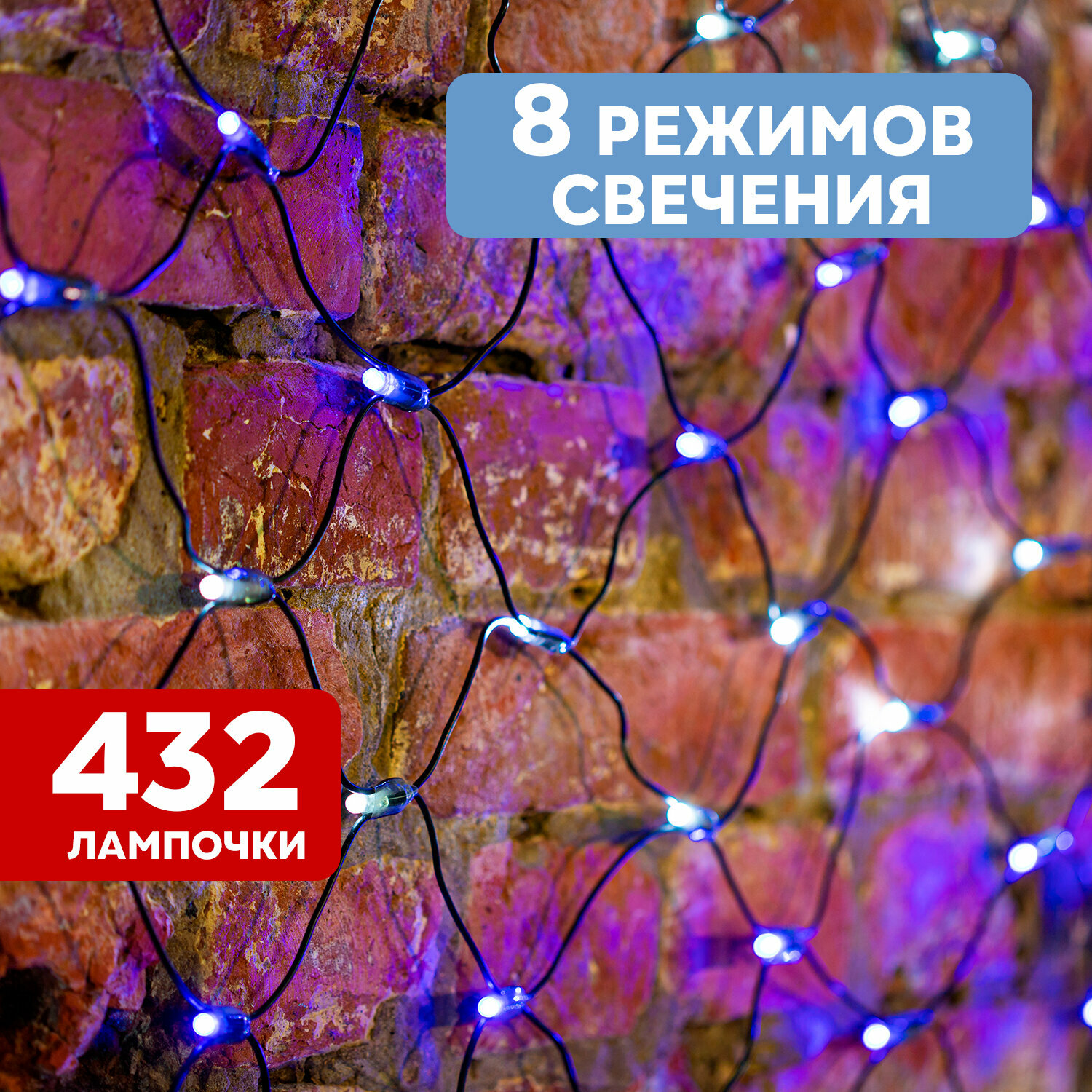 Светодиодная гирлянда Neon-night "Сеть" 2.5х2.5 м, 8 режимов, 432 белых светодиода, черный провод