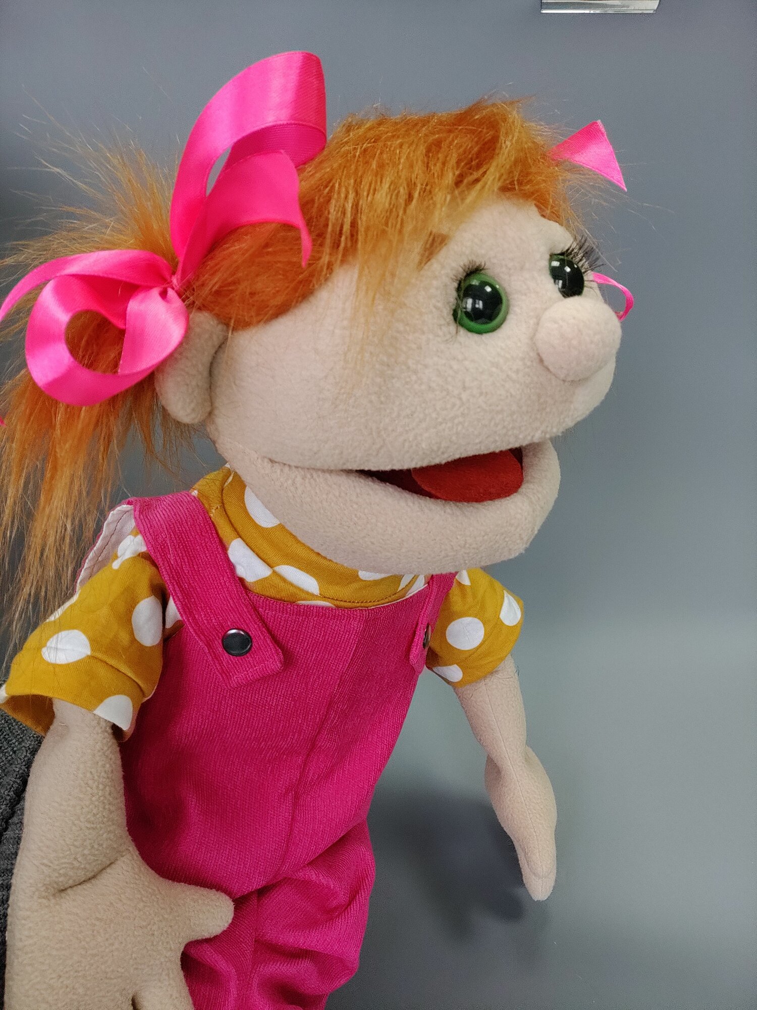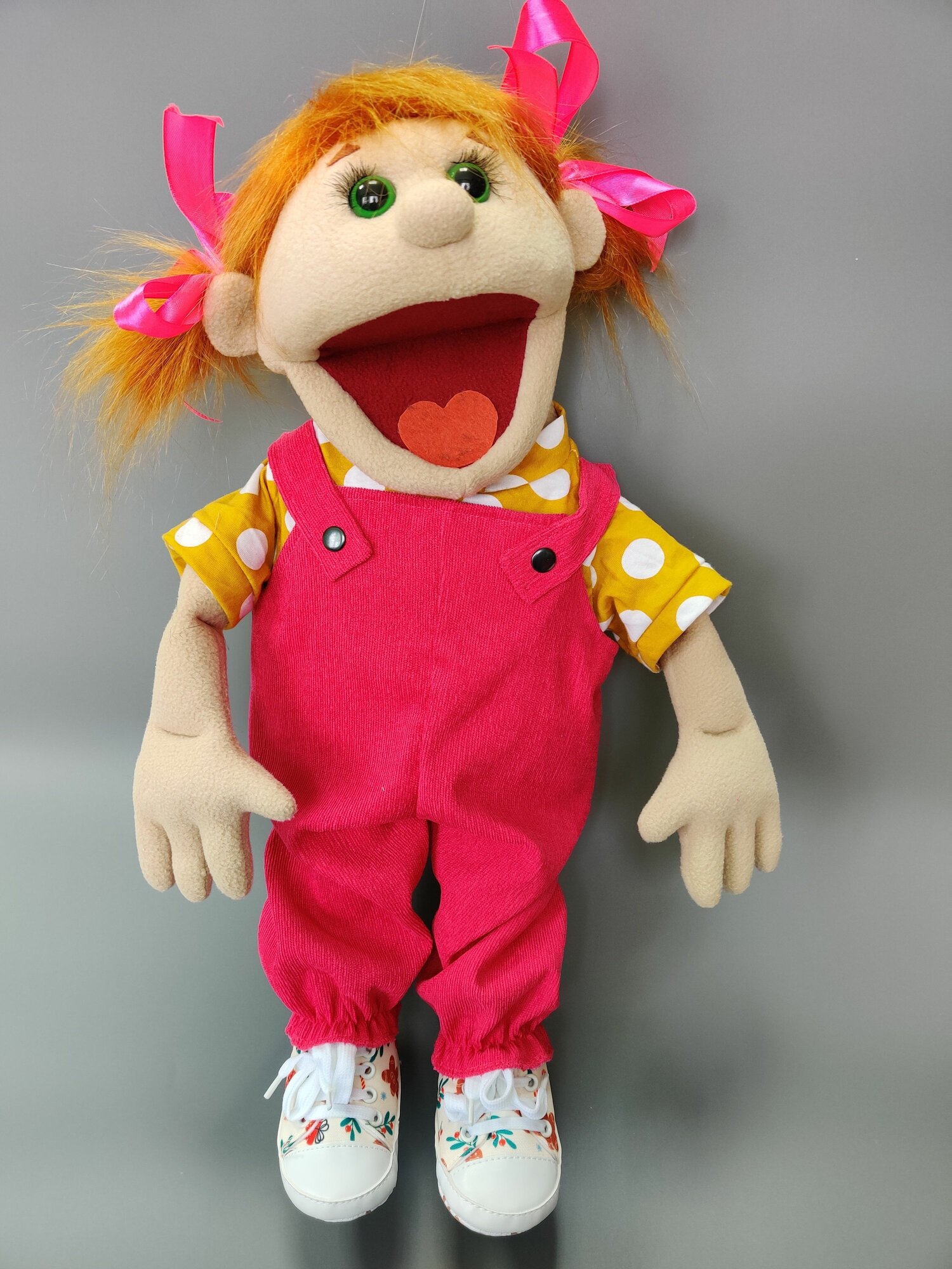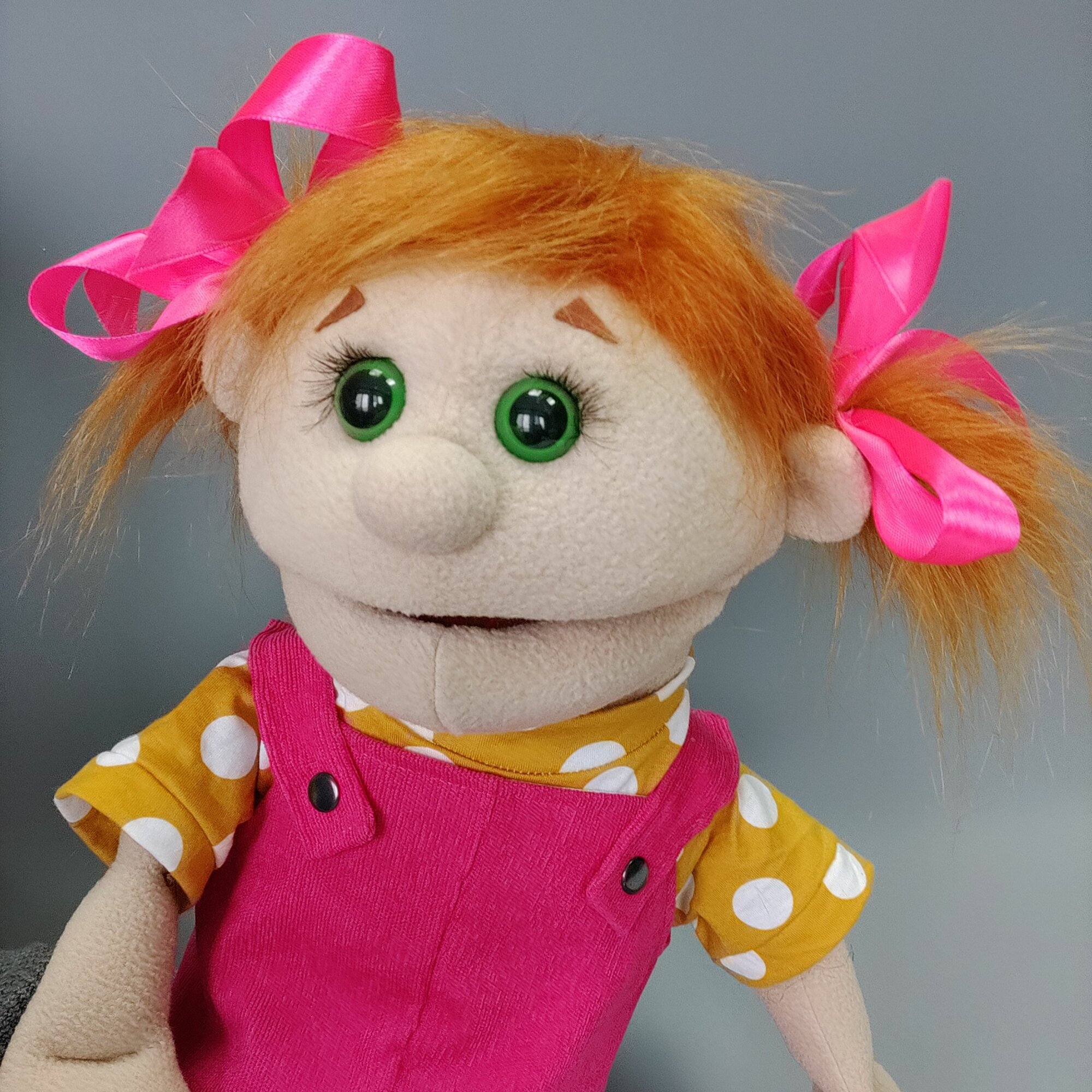 Кукла маппет девочка; перчаточная кукла с открывающимся ртом с ножками информация: