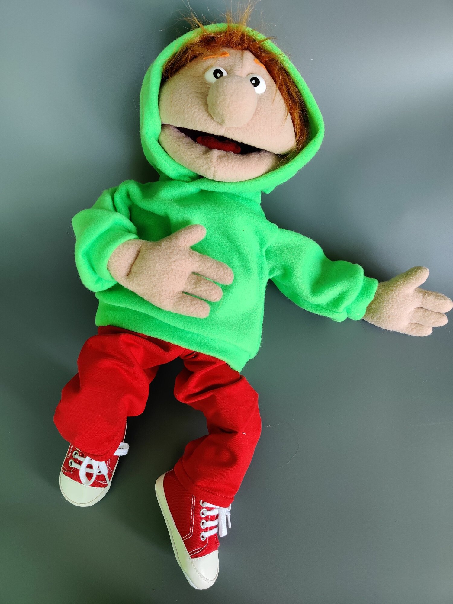 Кукла маппет мальчик; перчаточная кукла с открывающимся ртом с ножками информация:
