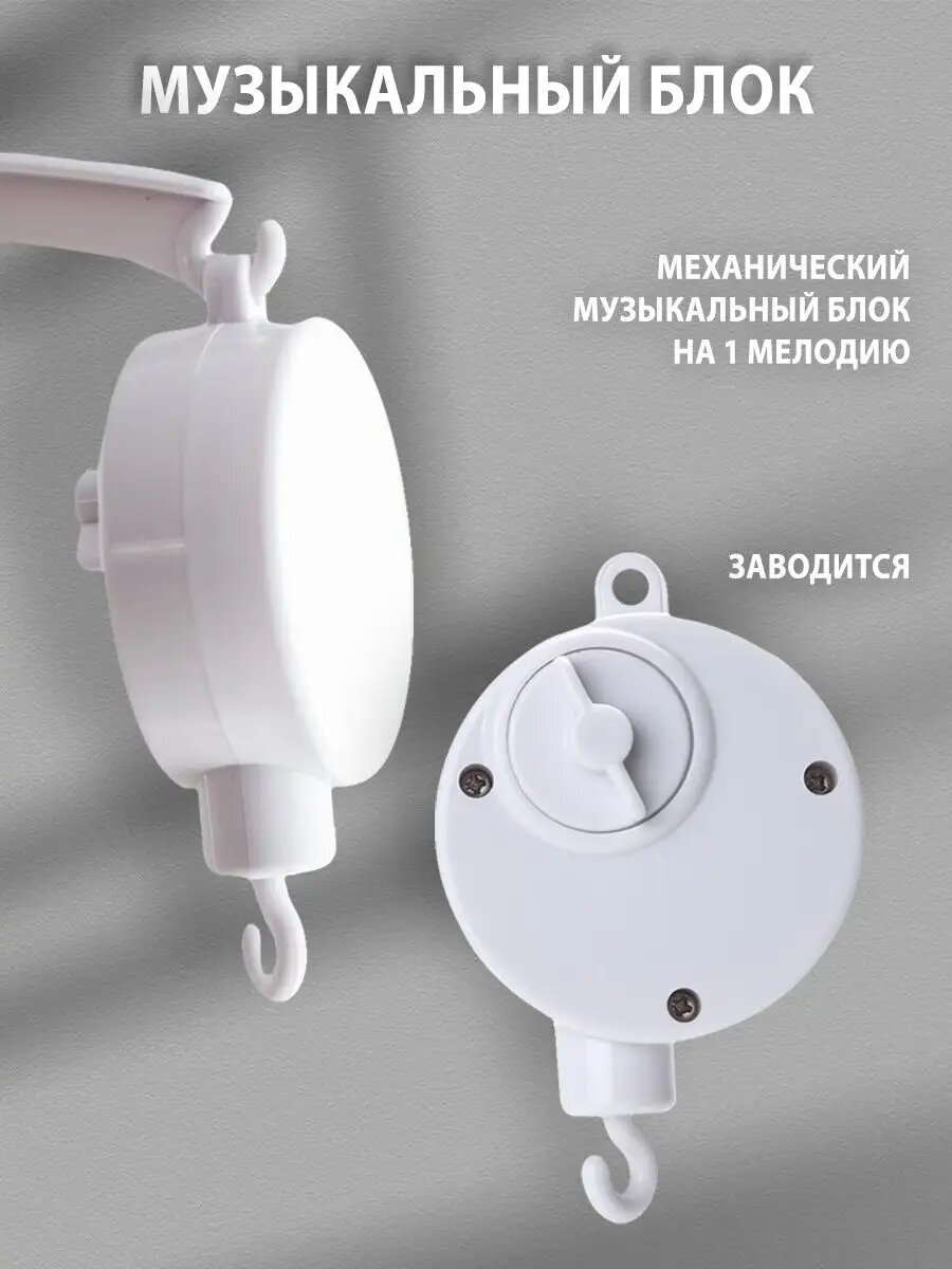 Мобиль на кроватку музыкальный для новорожденных и кронштейн из дерева-3