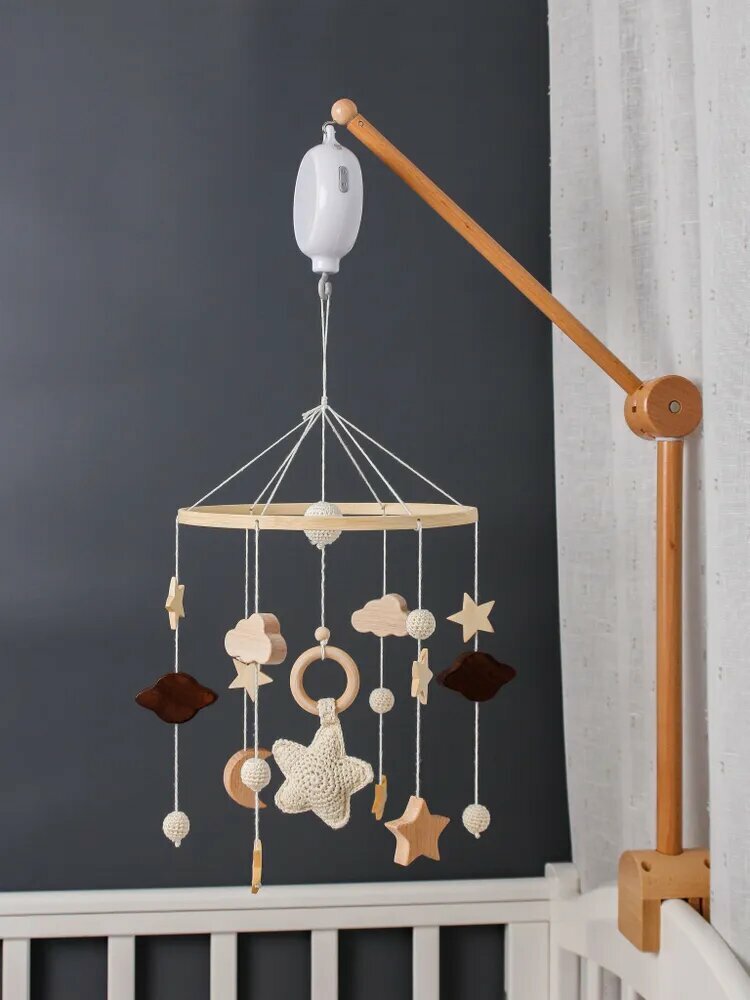10 цен на Мобиль на кроватку музыкальный для новорожденных и кронштейн из дерева