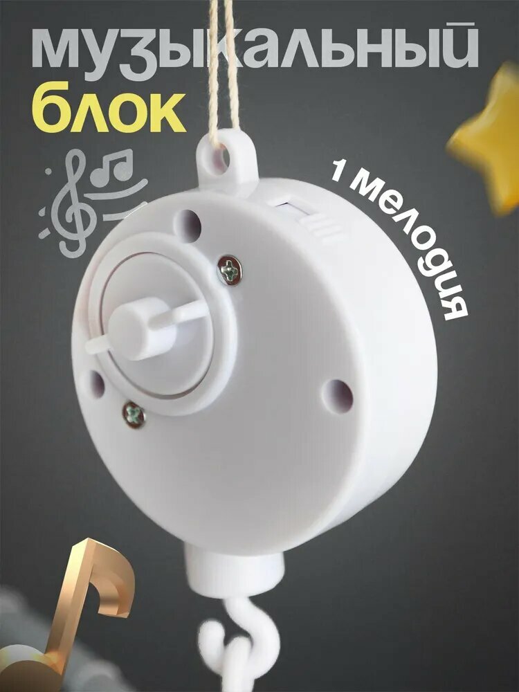 Мобиль на кроватку музыкальный для новорожденных и кронштейн из дерева-3