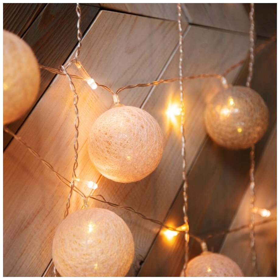 Отзывы на Светодиодная гирлянда-шарики "Вельвет" 3,5 м, 20 LED, прозрачный ПВХ, цвет: Теплый белый