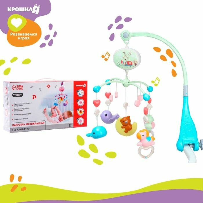 Мобиль в кроватку для новорожденных, Умка, 7 колыбельных, съемные игрушки, звуки природы