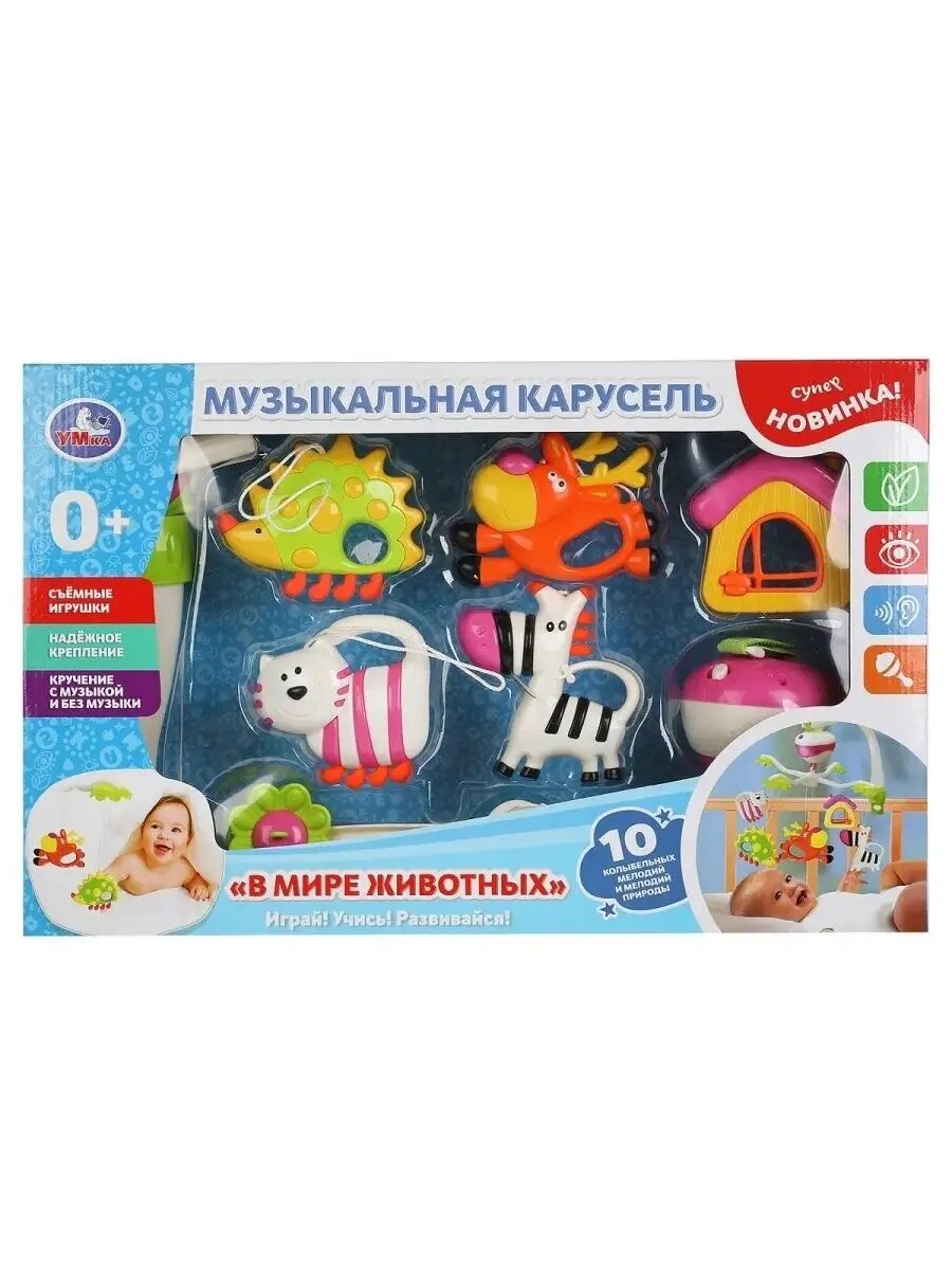 Мобиль в кроватку для новорожденных, Умка, 7 колыбельных, съемные игрушки, звуки природы