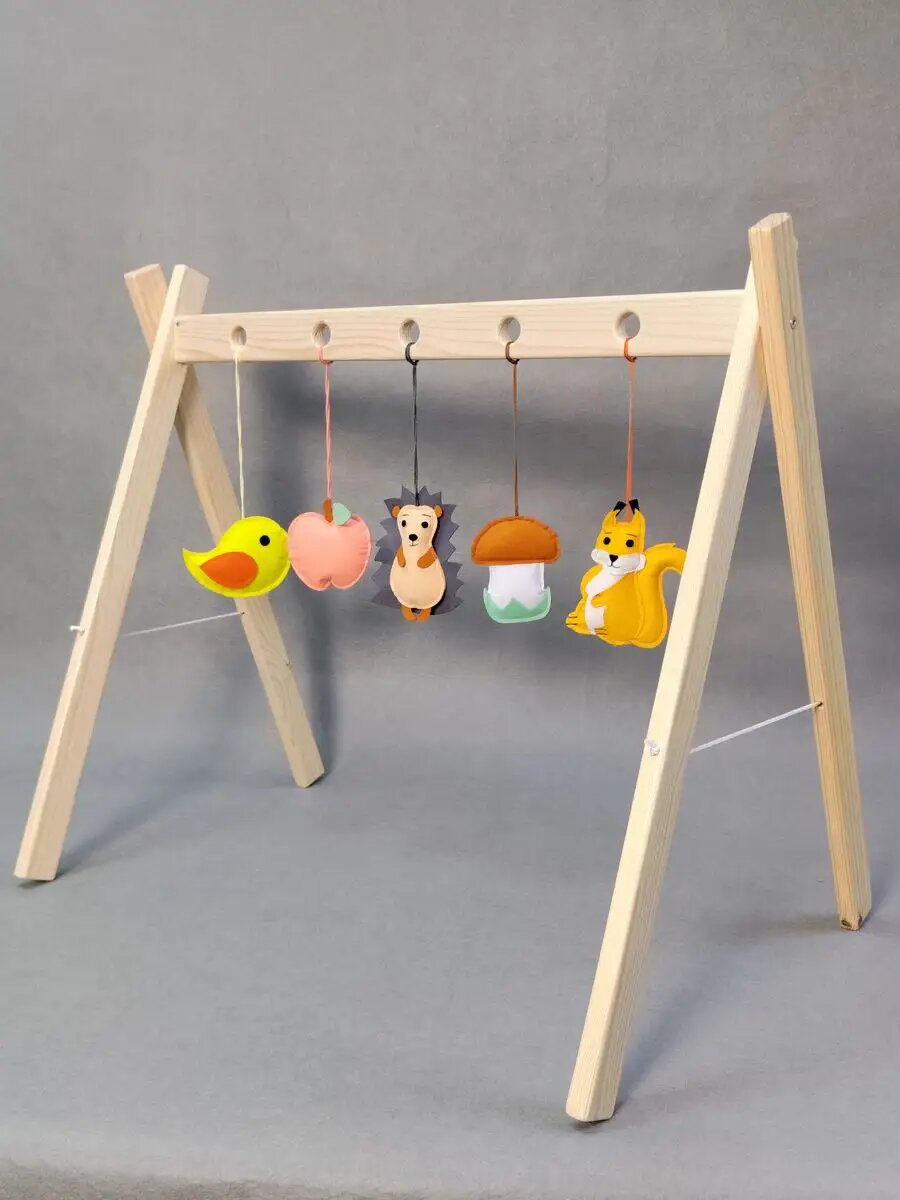 Мобиль на кроватку музыкальный для новорожденных и кронштейн из дерева-3