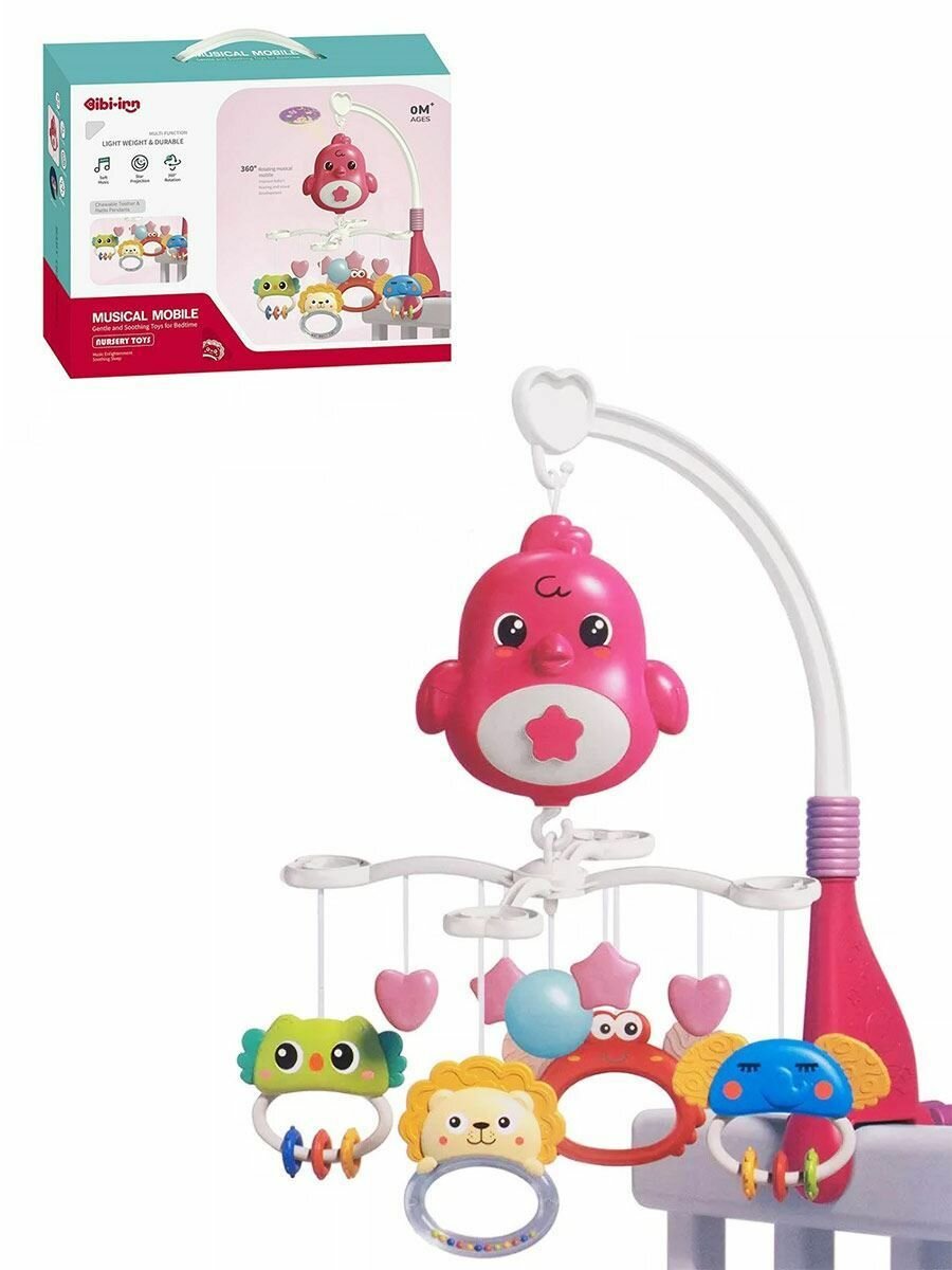 Музыкальная карусель Птичка с проектором розовая 648A-69 информация: