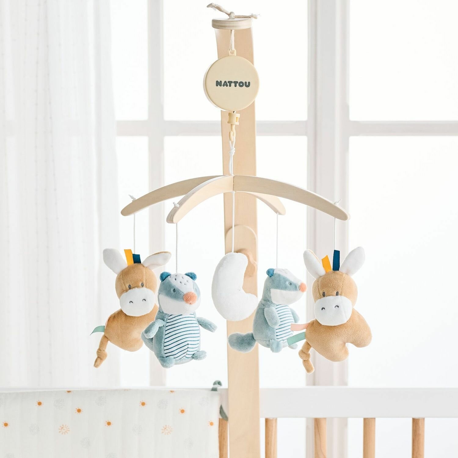 Мобиль Nattou FELIX & LEO Барсук и Ослик с деревянным держателем 595162 информация: