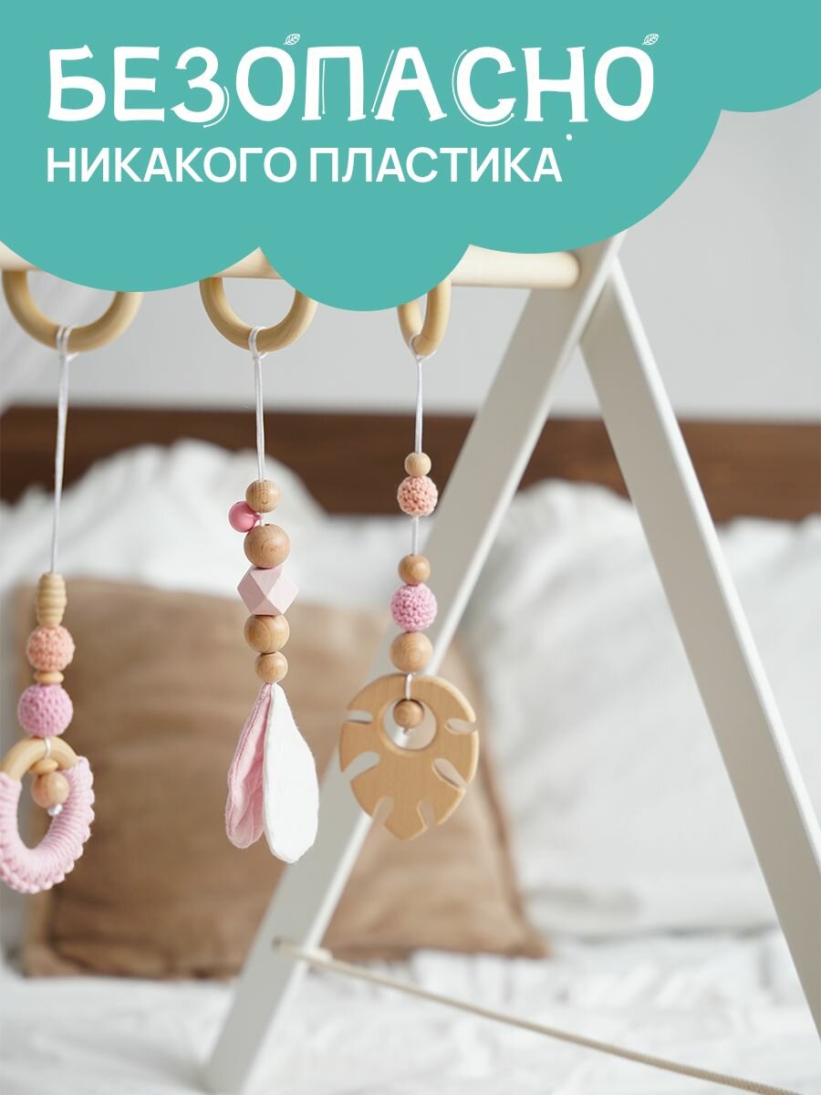 Мобиль на кроватку музыкальный для новорожденных и кронштейн из дерева-3