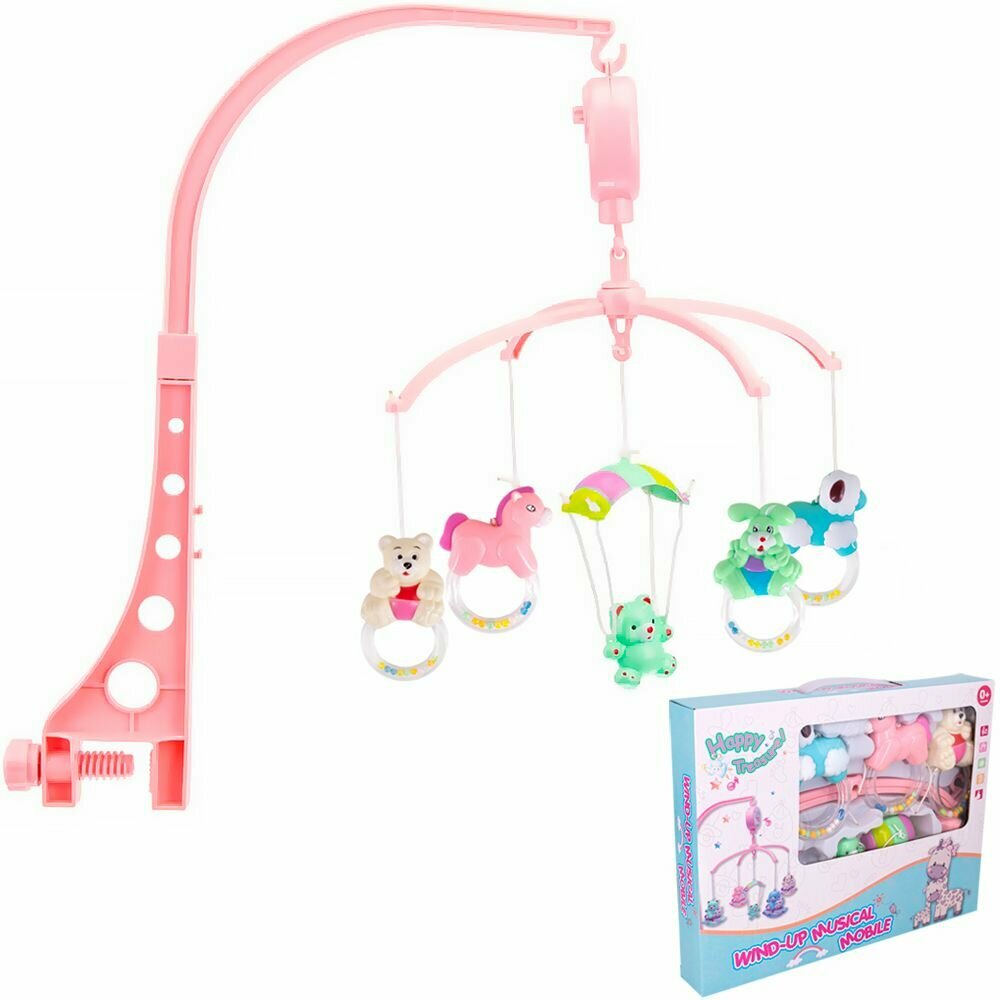 Мобиль на кроватку музыкальный для новорожденных и кронштейн из дерева-3