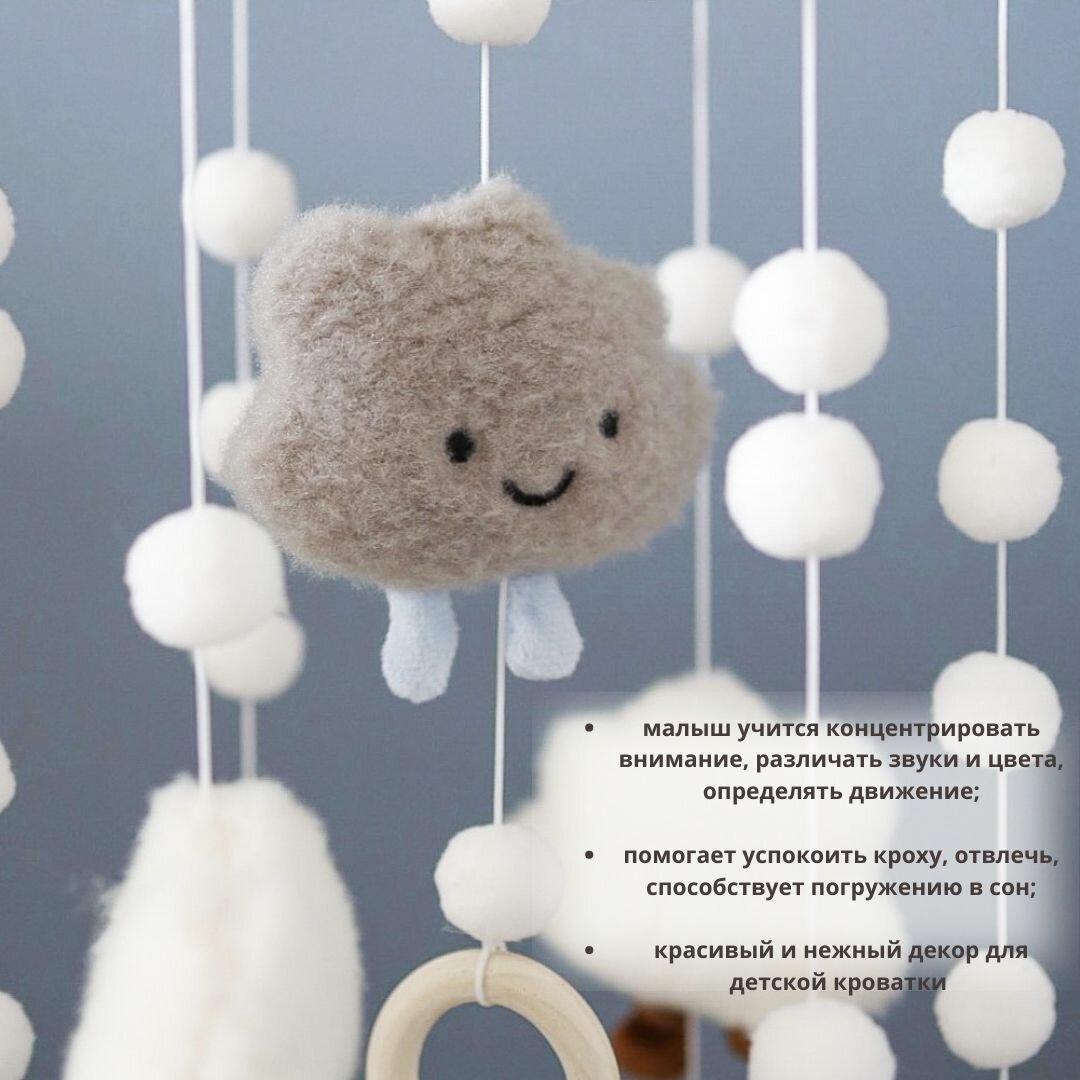 Музыкальный мобиль на кроватку для новорожденных "Пушистые облачка" / Детская карусель на кроватку / My honey bunny информация: