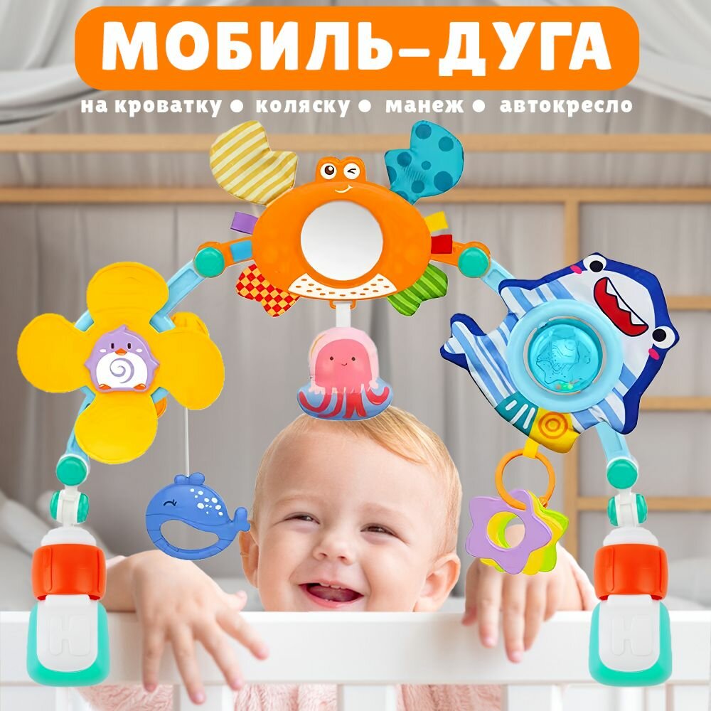 Мобиль в кроватку для новорожденных, Умка, 7 колыбельных, съемные игрушки, звуки природы