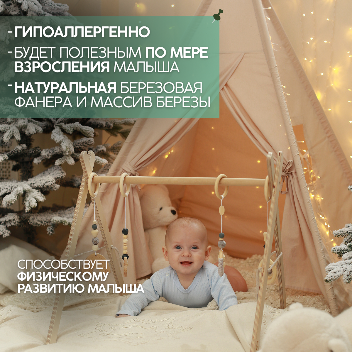 Мобиль на кроватку музыкальный для новорожденных и кронштейн из дерева-3
