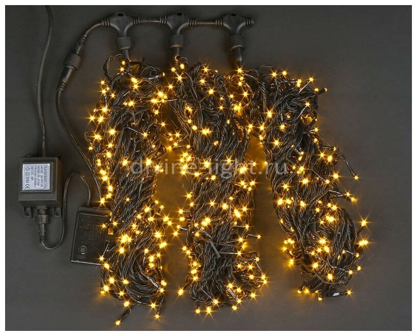Гирлянда светодиодная желтая 8 режимов свечения 24B, 600 LED, провод черный, IP54 RL-T3*20N2-B/Y (Rich LED) 13 910 ₽