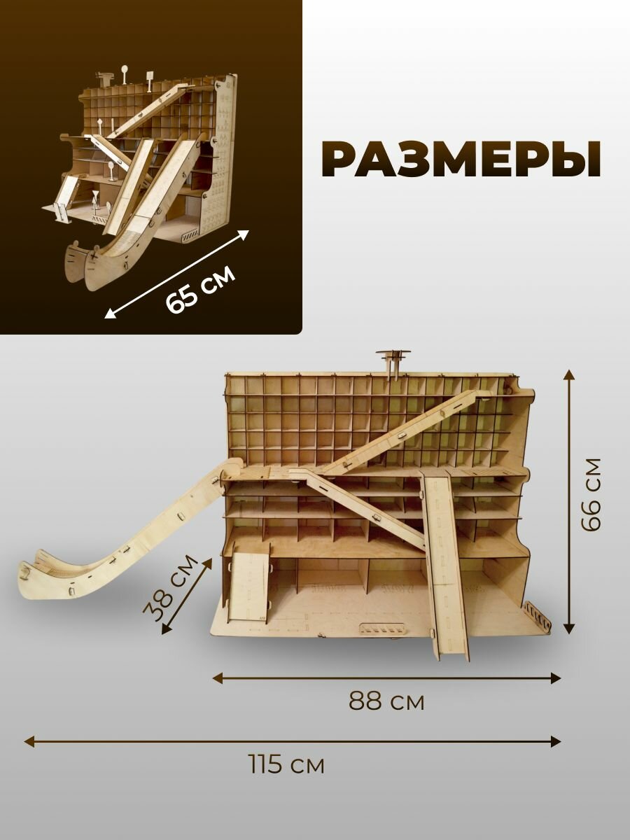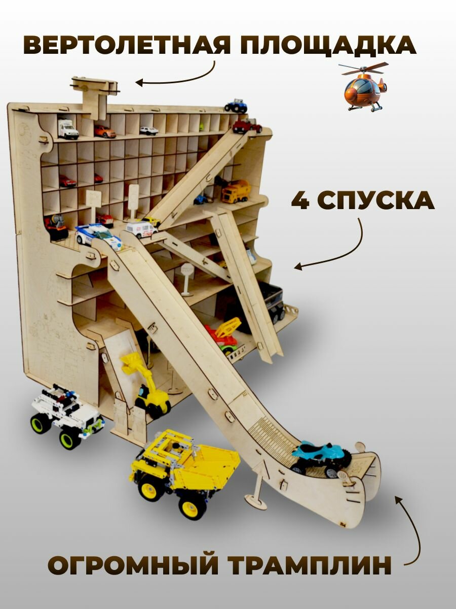 Деревянная парковка Гараж для машинок XXXL полка для игрушек подарок на день рождения ребенку 4 000 ₽