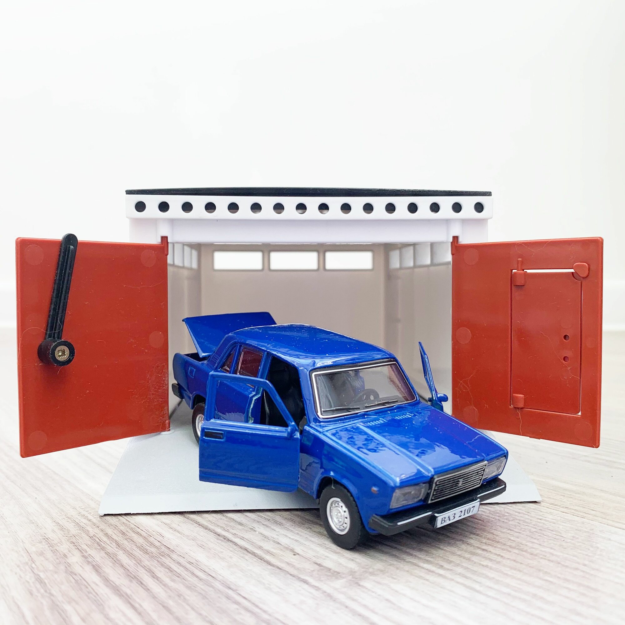 Гараж с 2-мя воротами + машинка модель ВАЗ 2107 (12 см, метал, инерция, 2 откр. двери и багажник) - синяя 1 706 ₽