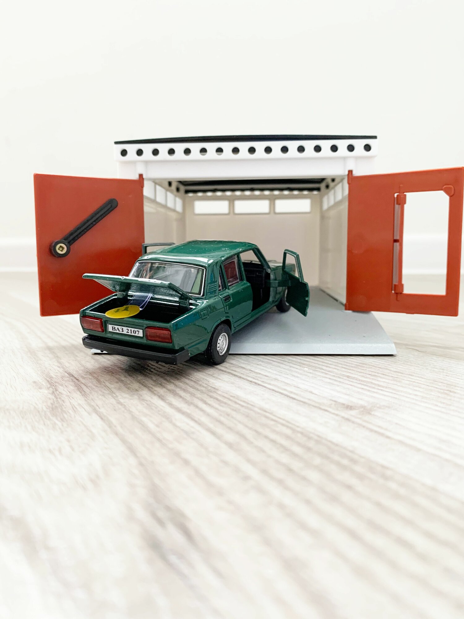 Гараж + машинка модель ВАЗ 2107 (12 см, метал, инерция, 2 откр. двери и багажник) - зеленая информация:
