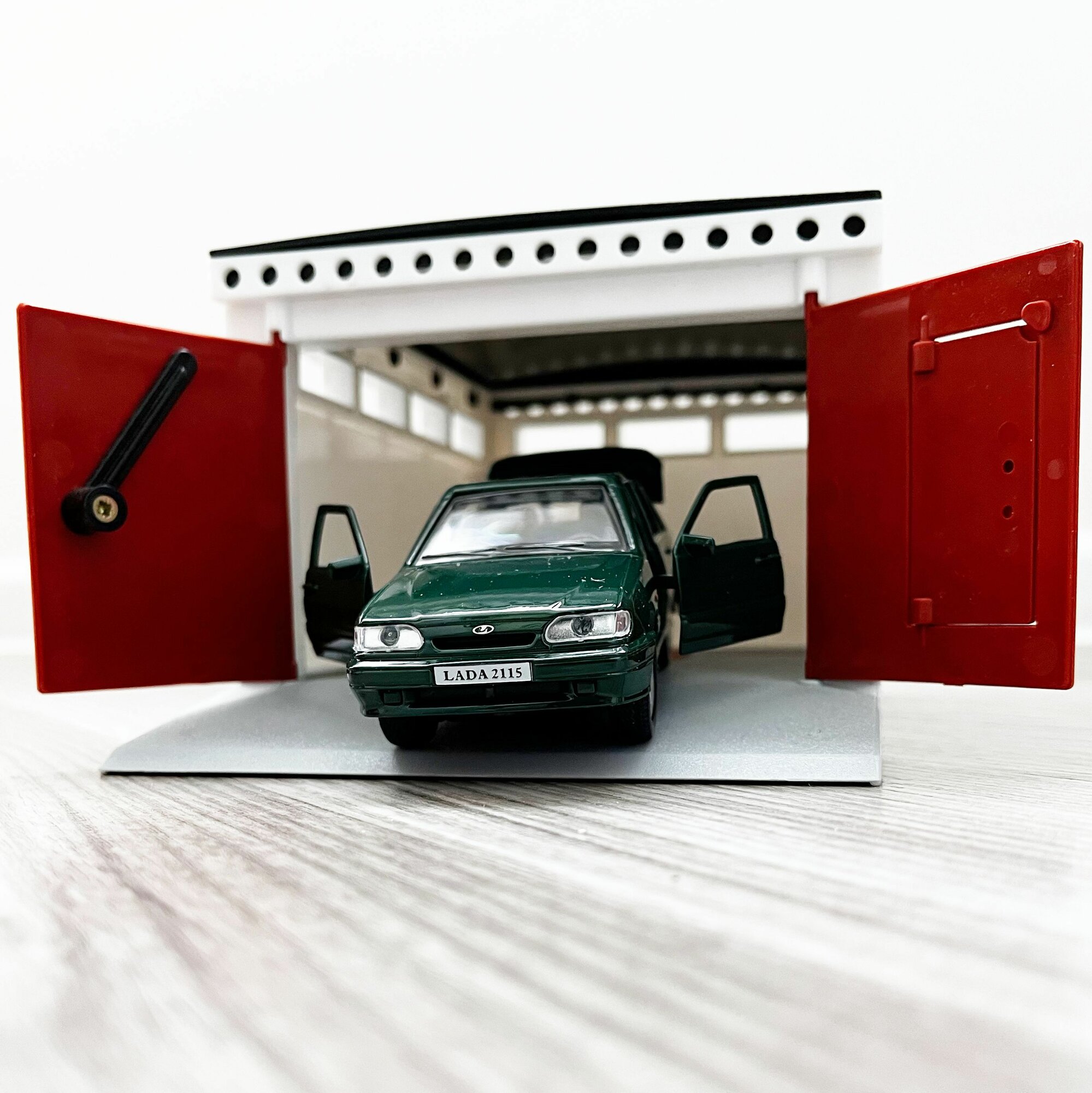 Гараж + LADA 2115 (метал, 12 см, инерция, открытие 2-х дверей и багажника) - темно-зеленая информация: