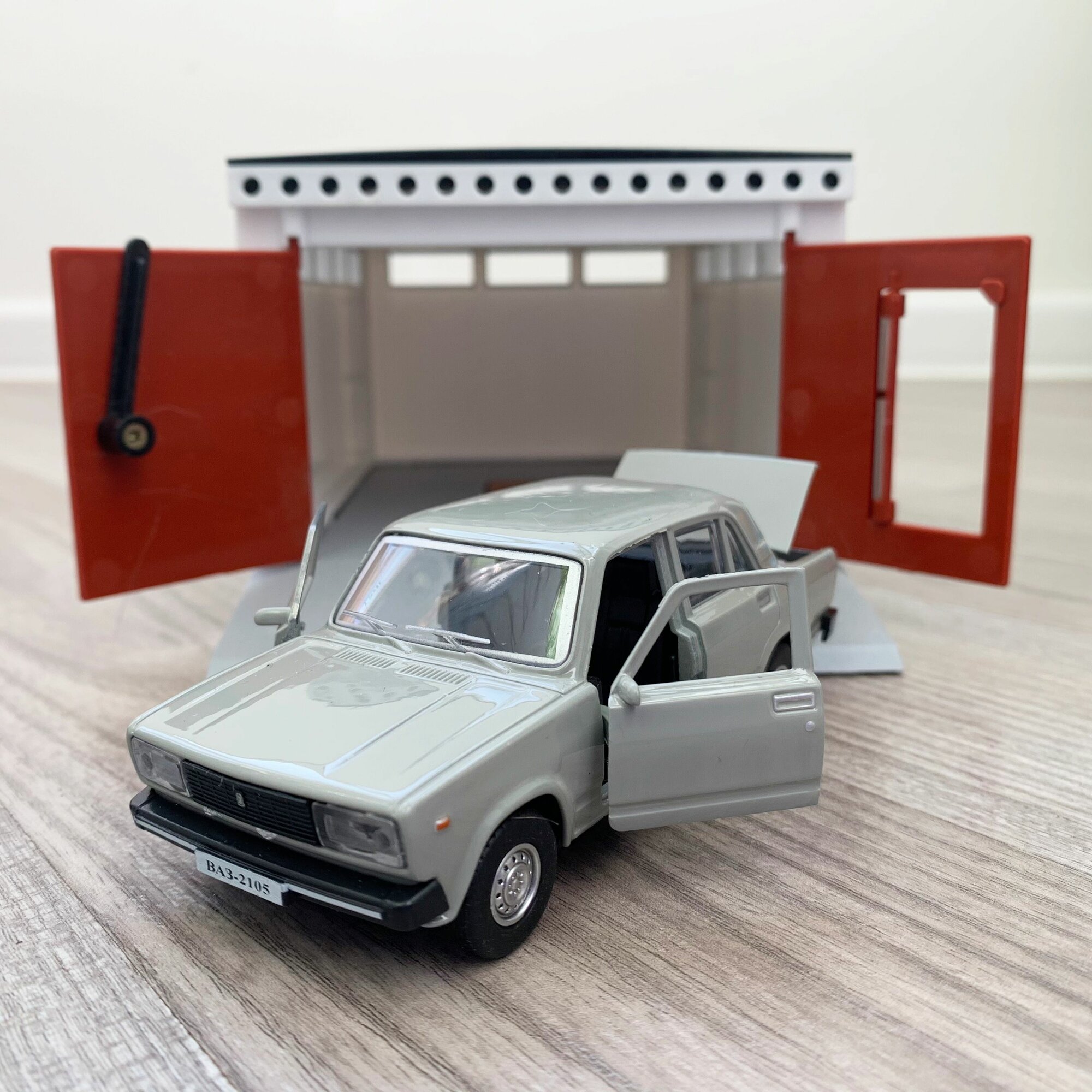 10 цен на Гараж + машинка модель ВАЗ 2105 (12 см, метал, инерция, открытие 2-х дверей, багажника) - серый