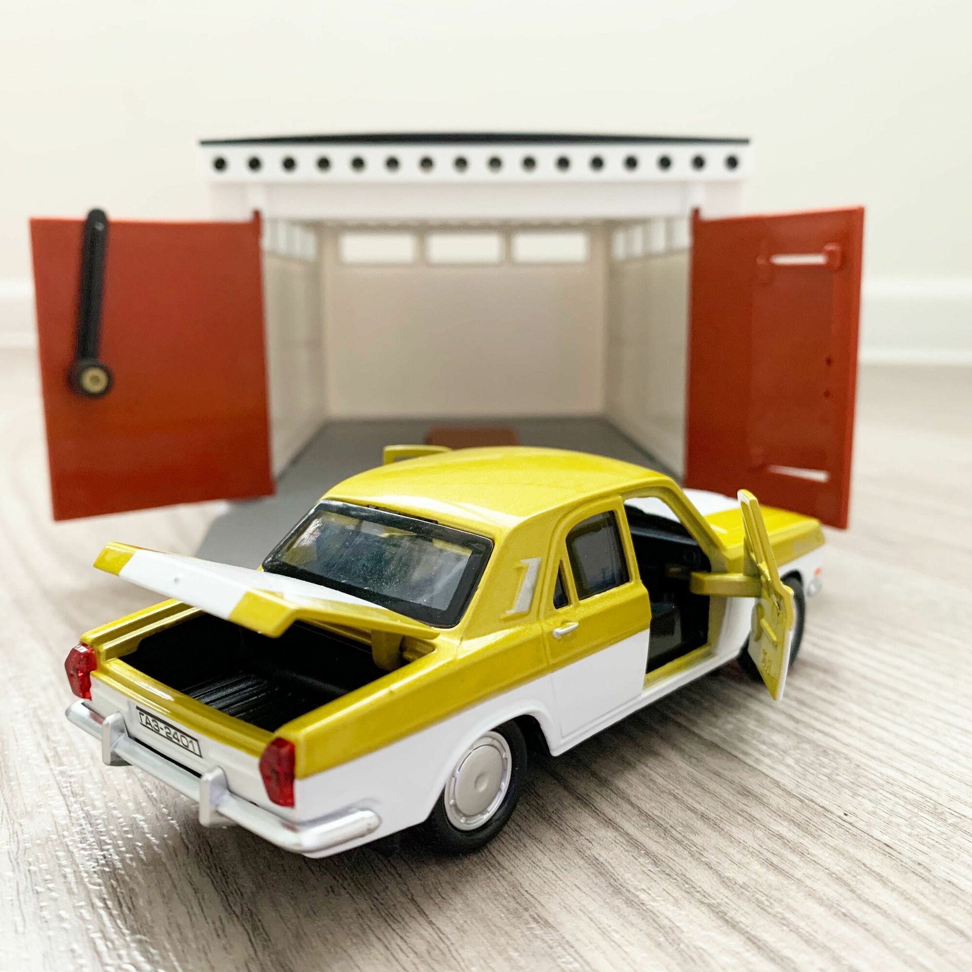 Отзывы на Гараж + Волга ГАЗ 2401 (седан, 12 см, метал, инерц, откр. дверей и багажника) - золотой