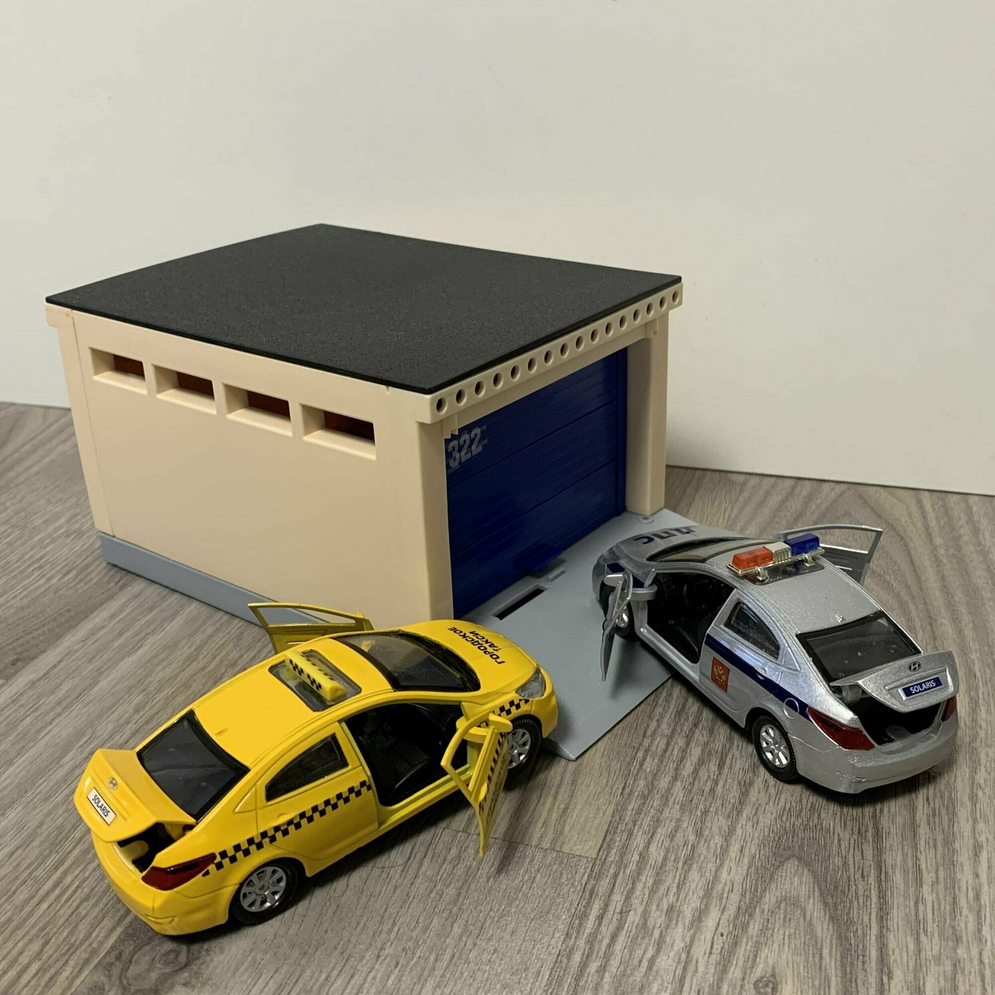 Отзывы на Гараж + 2 машины такси и полиция (металл, 12 см, инерция, открытие 2- дверей и багажника