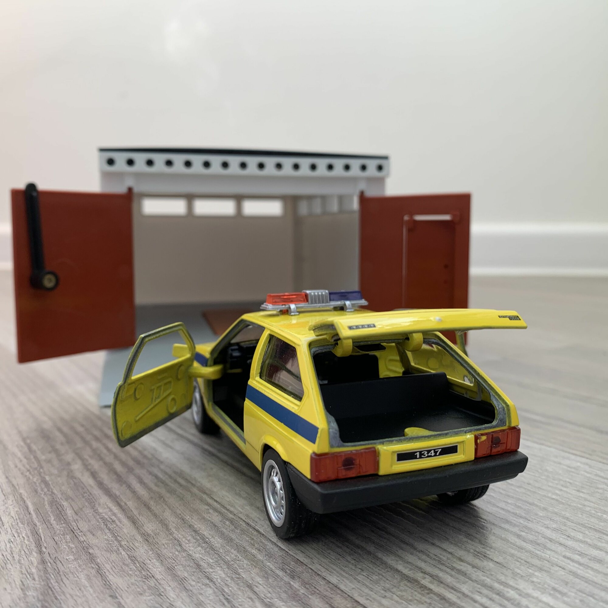 10 цен на Гараж ретро и машинка 2108 милиция СССР (12 см, метал, инерция, свет, звук, открытие 2-х дверей и багажника) -желтая