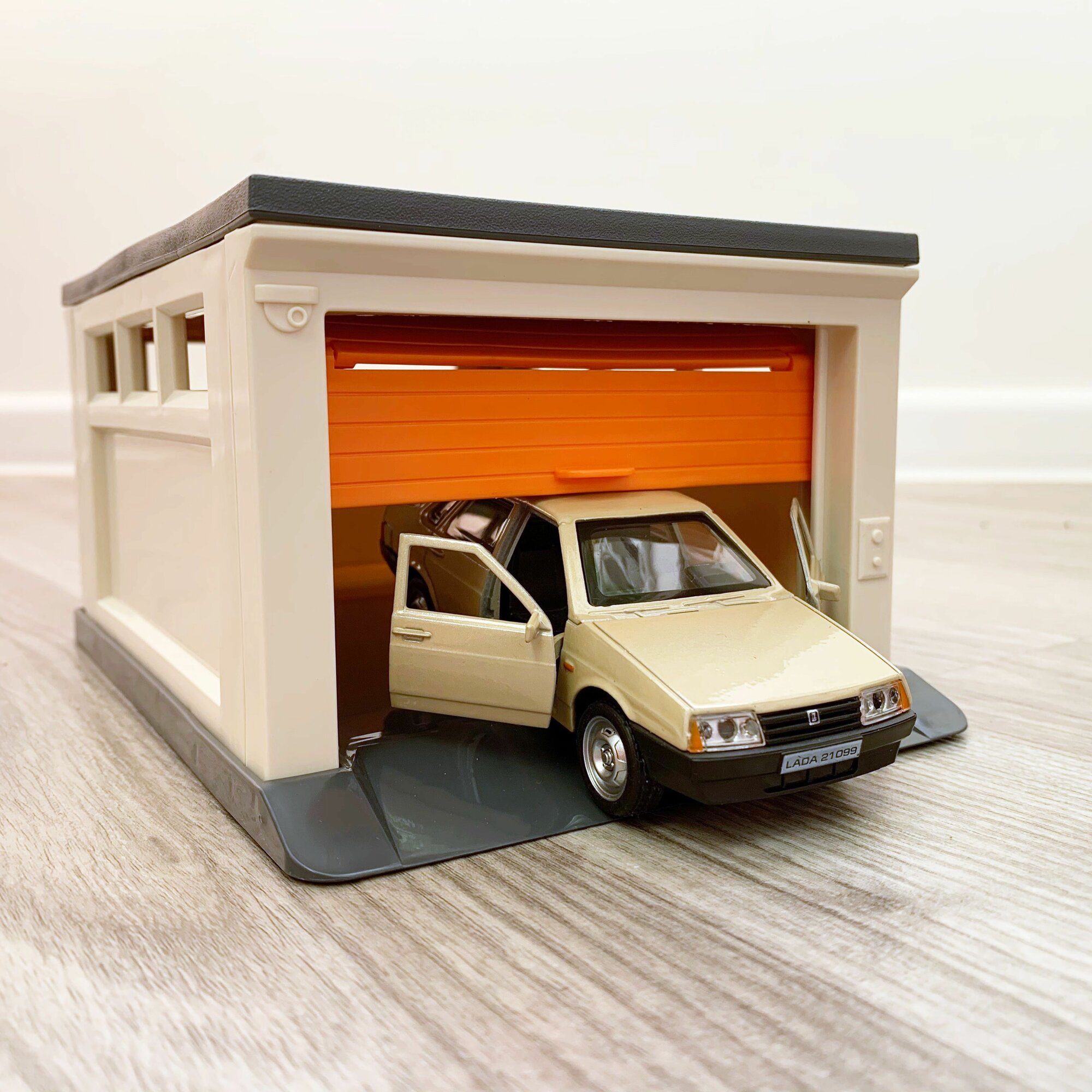 Гараж с подъемными воротами + машинка модель LADA 21099 (12 см, метал, инерция, откр. 2-х дверей и багажника) - бежевая информация: