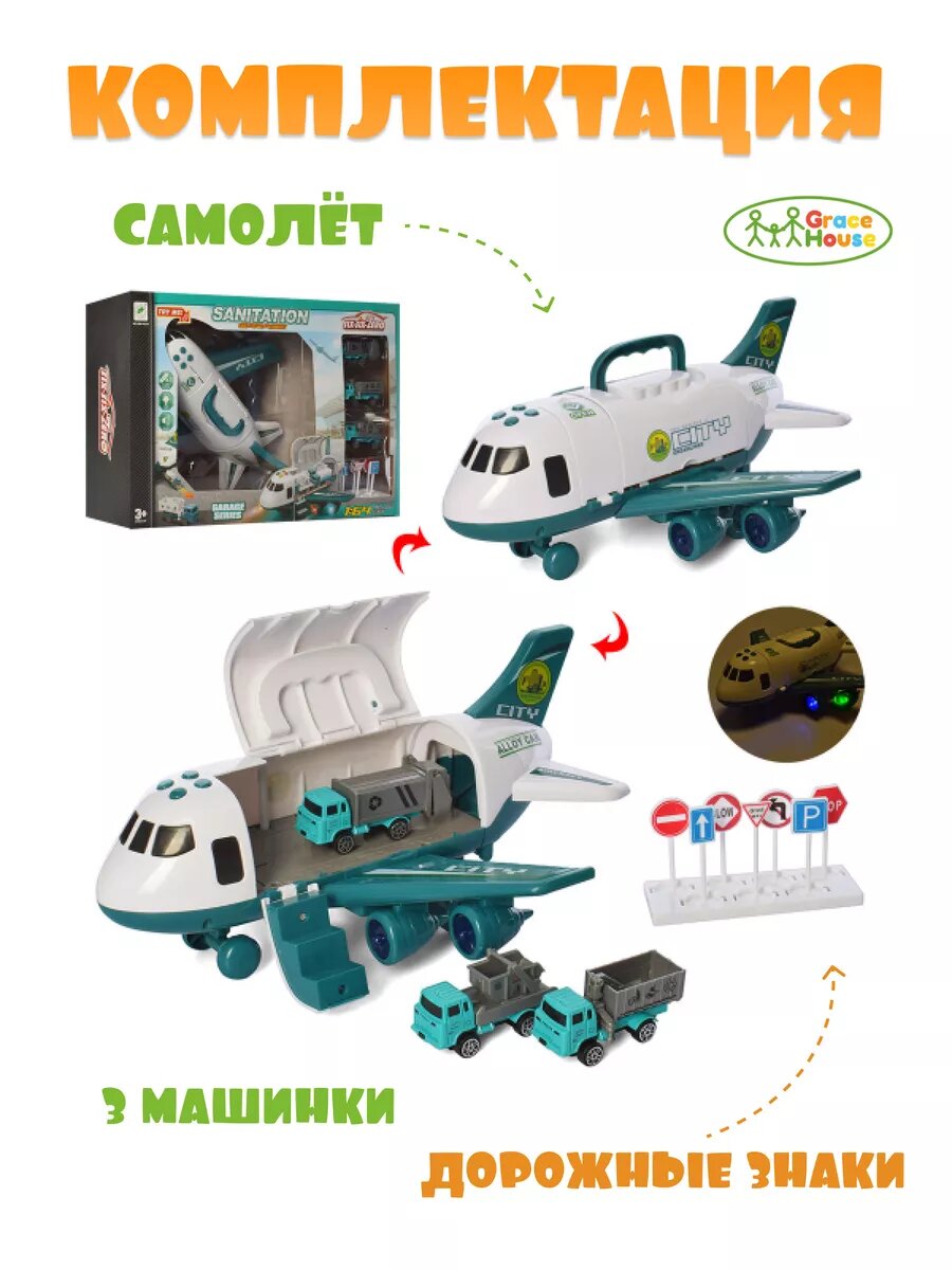 10 цен на Детский игровой набор самолёт с машинками GRACE HOUSE паркинг