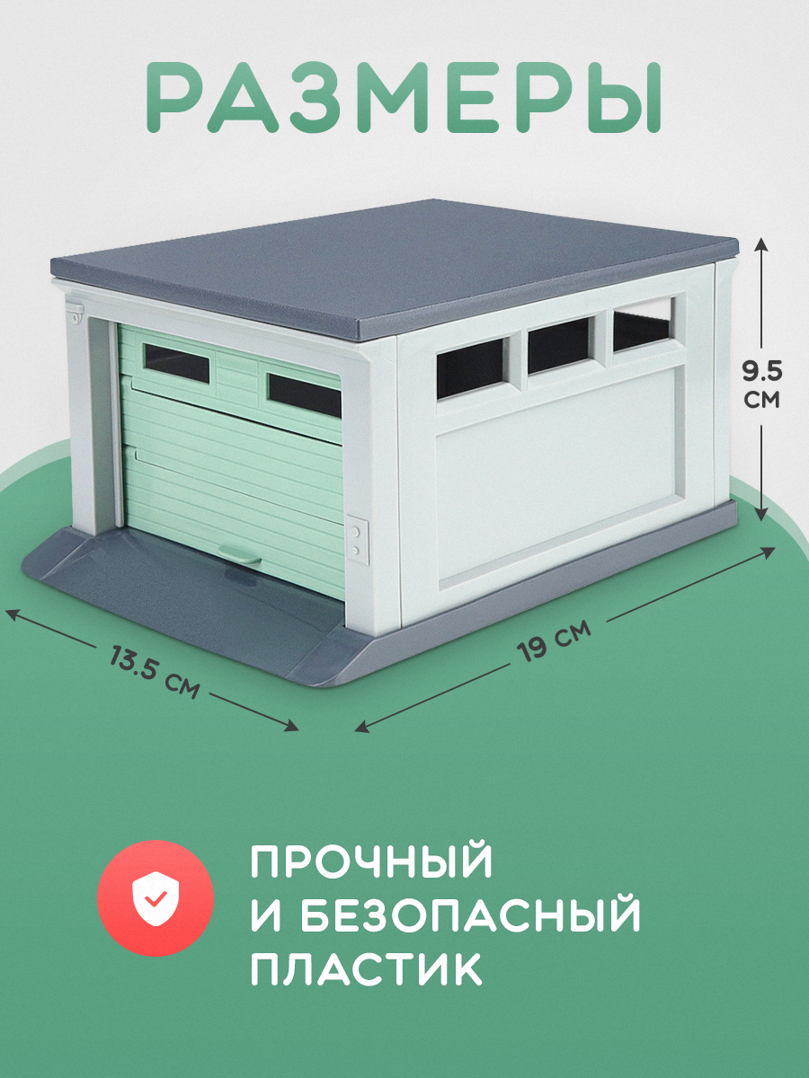 Гараж для игрушечных машинок с воротами (серый, мятный) 187х136х95 мм информация: