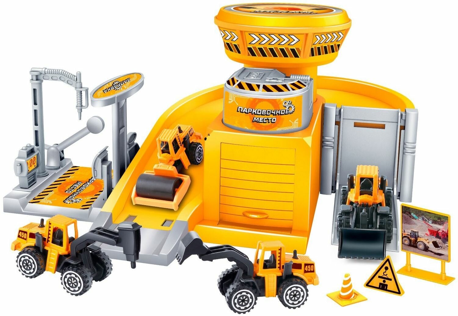 10 цен на Детский игровой автотрек-парковка "Стройплощадка" многоуровневый, 2 металлические машинки в наборе