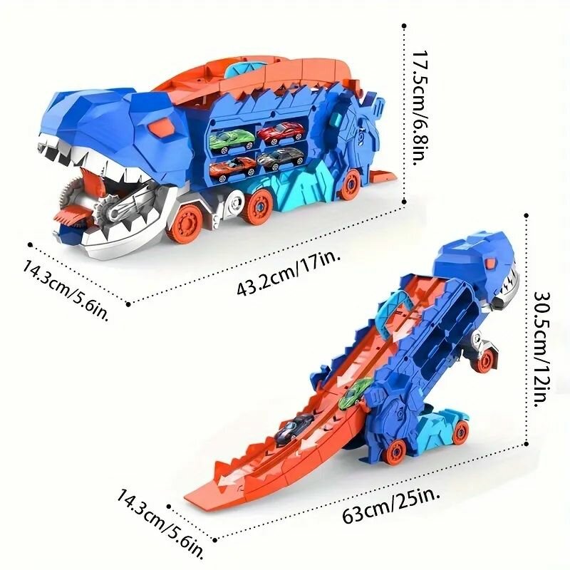 10 цен на Игровой набор "Динозавр-Автовоз", с 4 машинками, металл, интерактивный, синий