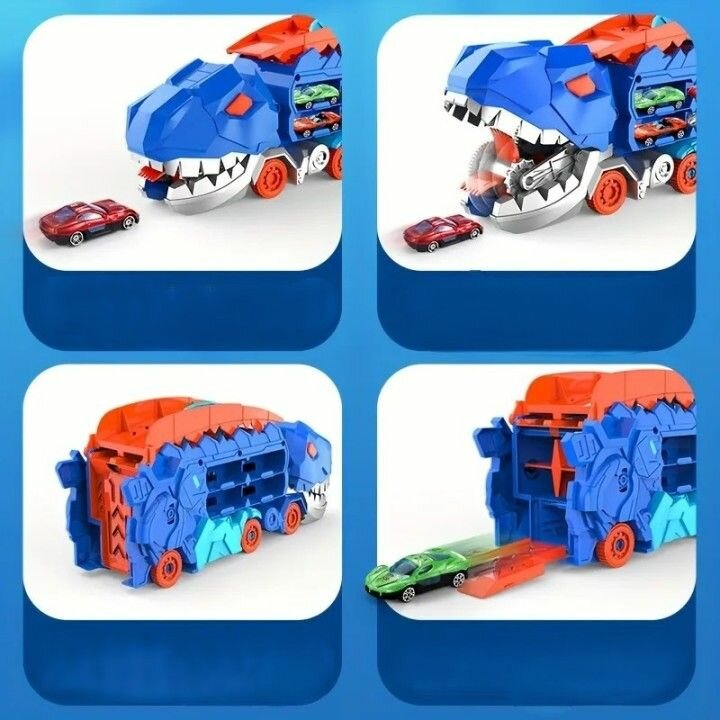 Игровой набор "Динозавр-Автовоз", с 4 машинками, металл, интерактивный, синий информация: