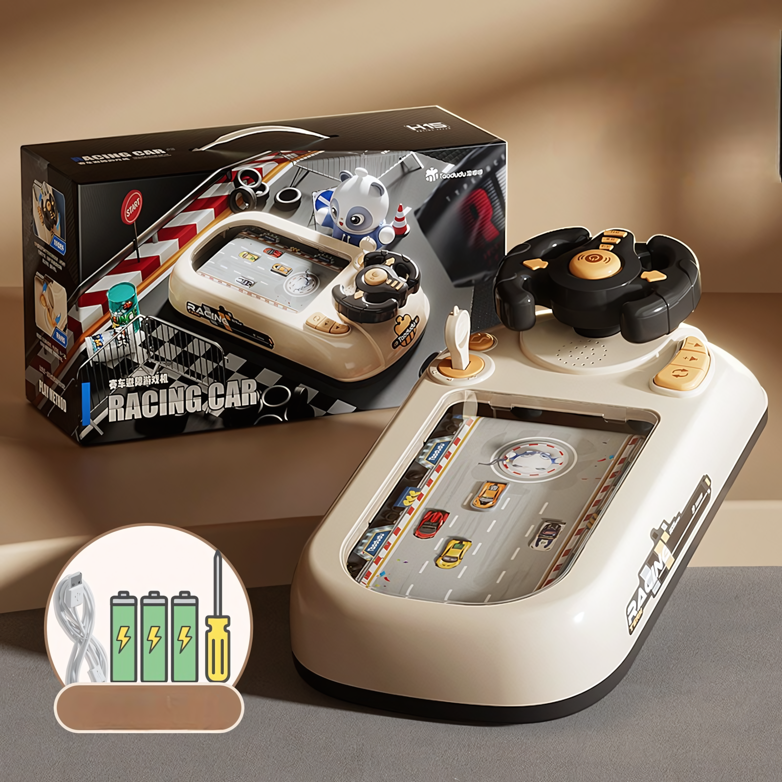 Детская игрушка "Гонки" с рулем, двойной источник питания [USB + аккумулятор] информация: