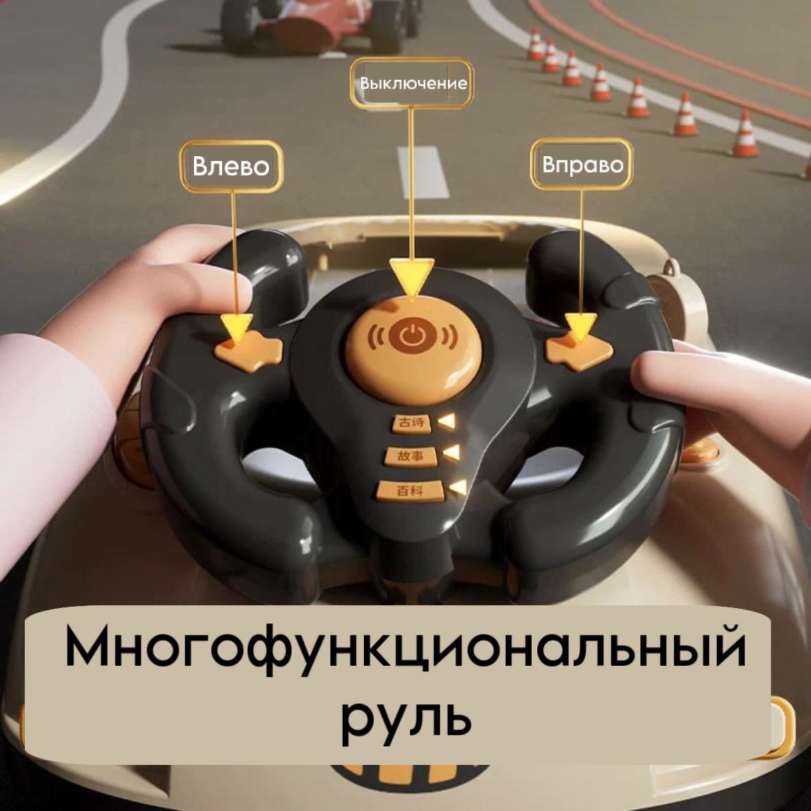 Детская игрушка "Гонки" с рулем, (аккумуляторная версия с улучшенной литиевой батареей) информация:
