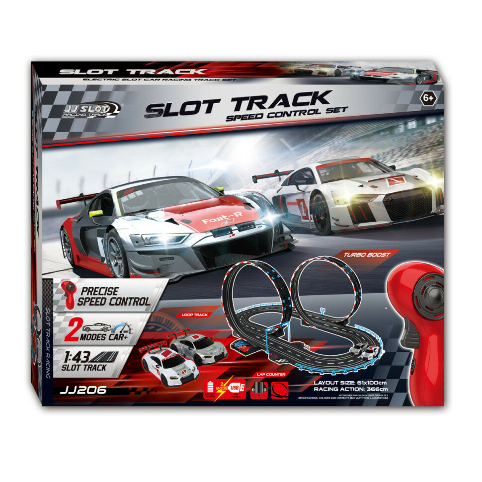 Гоночный автотрек JJ slot (2 машинки, 366 см, от сети, 1:43) - JJ206-1 информация: