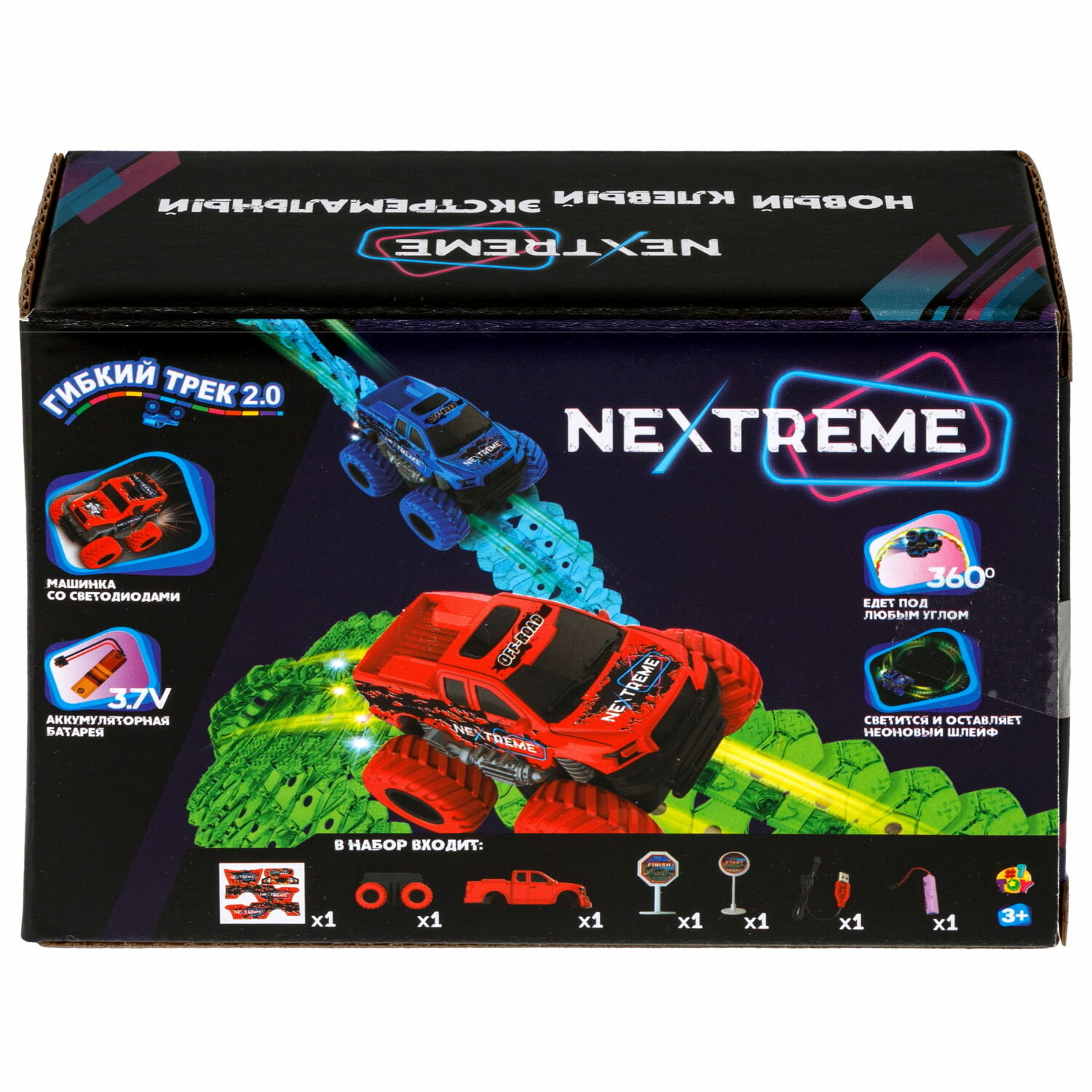 10 цен на Детская машинка для трека на батарейках светящаяся 1Toy NEXTREME Гибкий трек внедорожник красный