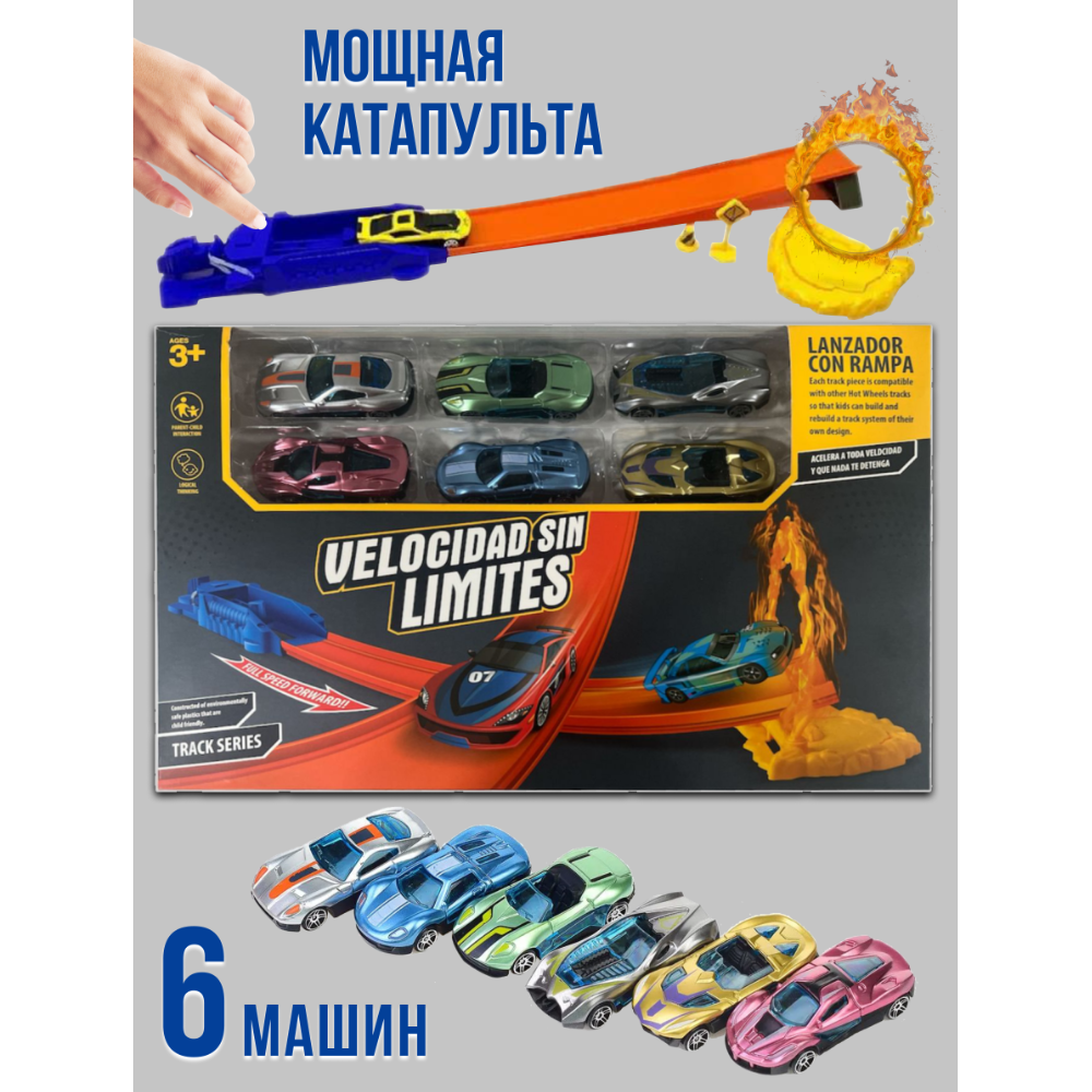 Гоночный трек с машинками 77 х 6,5 х 3 см, пусковой механизм, 6 гоночных машин, подарок для мальчика информация: