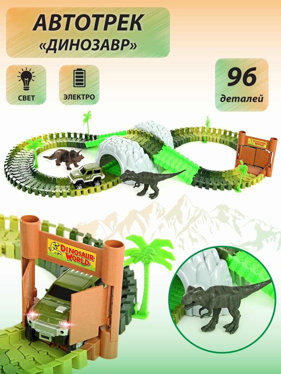 10 цен на Гибкий автотрек с машинкой "Динозавр", Veld Co / 96 деталей / Детский гоночный трек, трасса для машинок