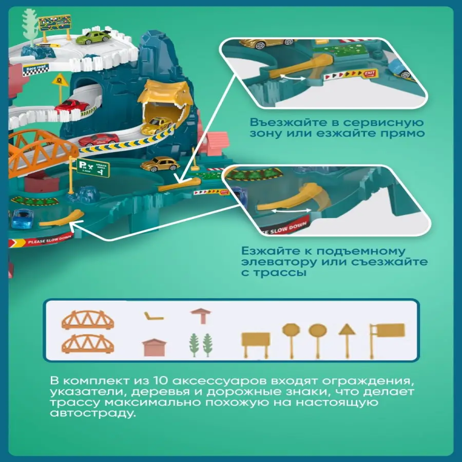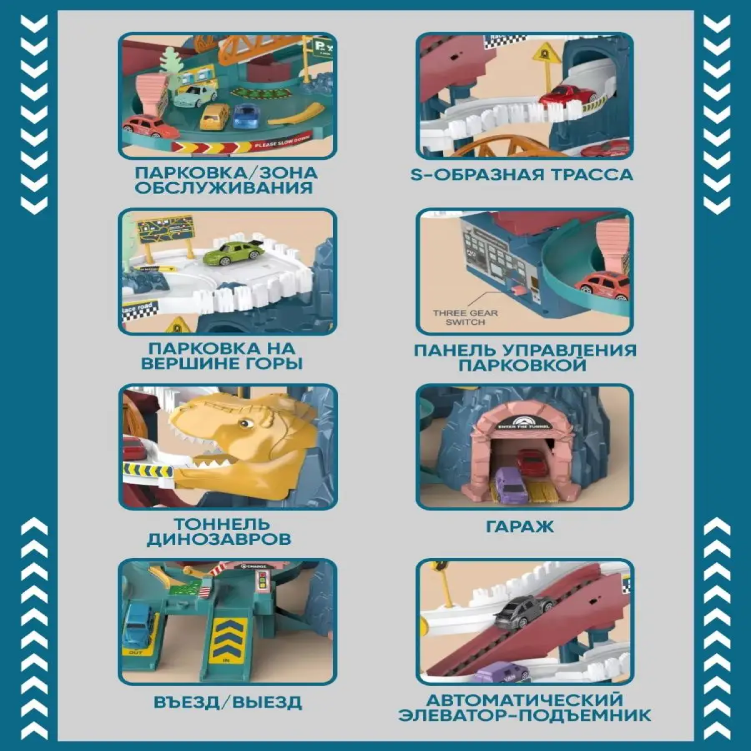 10 цен на Парковка автотрек TRENDTOYS "Дино", паркинг с машинами, звуковые и световые эффекты