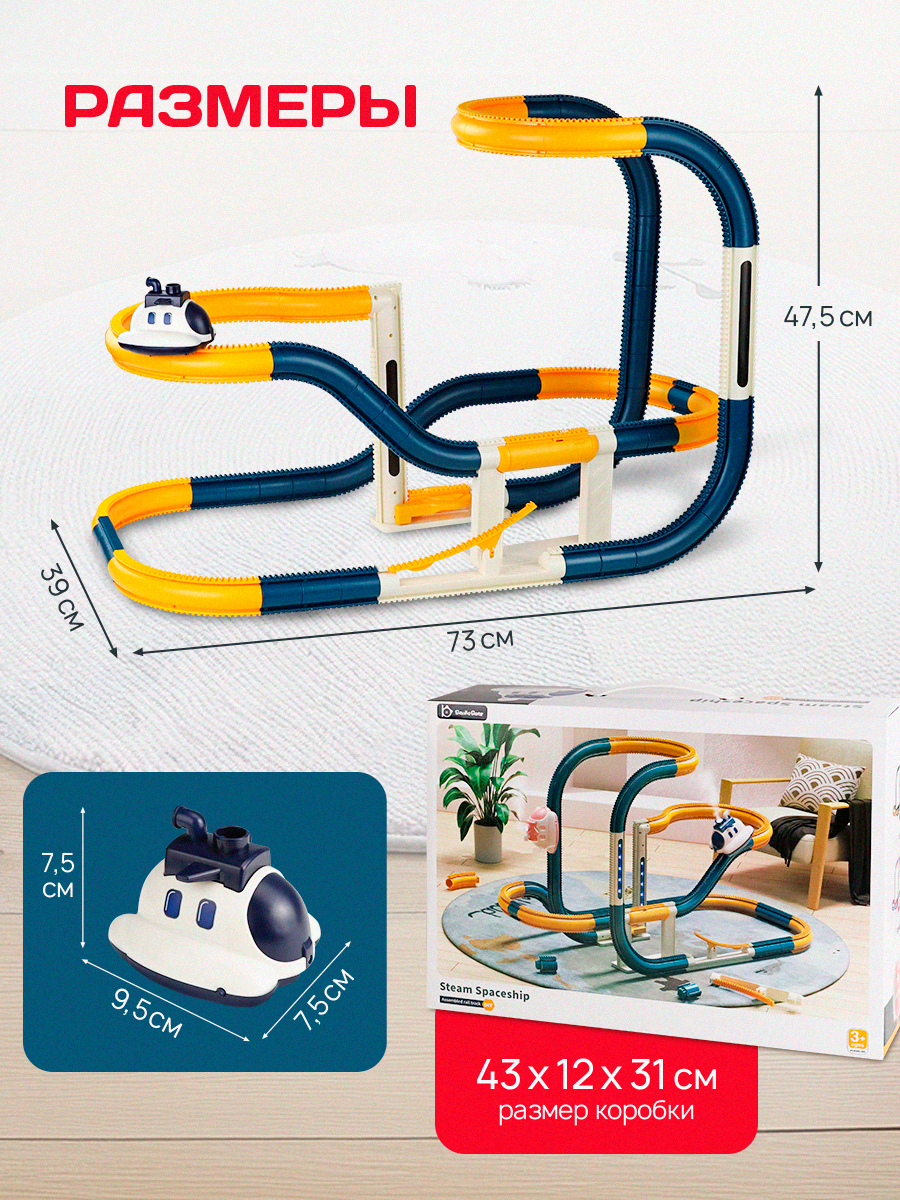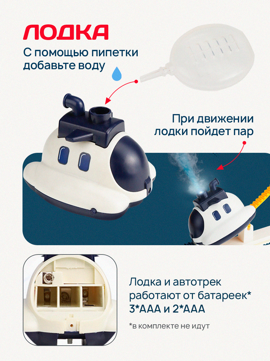 Отзывы на Автотрек с лодкой (73х39х47.5см) свет, пар, трамплин, лифт, на батарейках. Артикул Y26938007