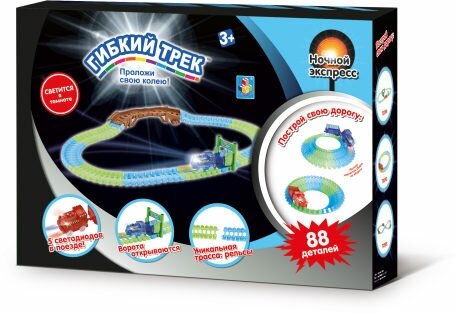 Отзывы на Гибкий трек светящийся с поездом со светом 1TOY Ночной Экспресс, трасса для машинок, дорога, автотрек, 88 деталей