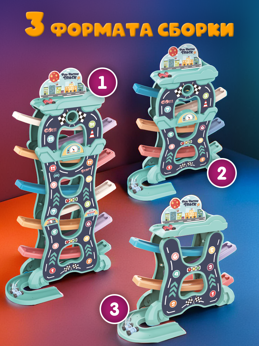Многоуровневый автотрек с машинками WiMi, парковка для машинок, гоночная дорога 905 ₽