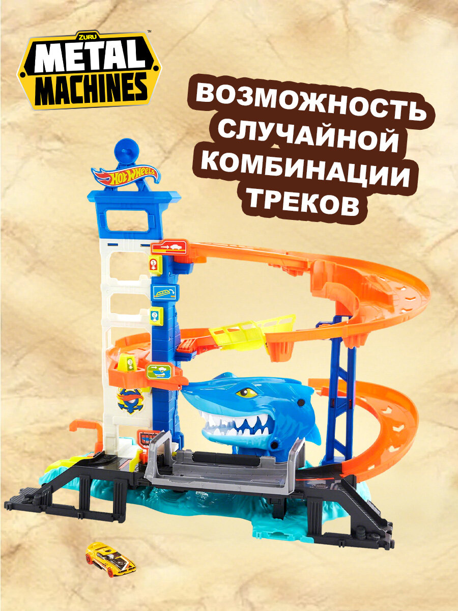 Автотрек с динозаврами и машинками Скоростной спуск для мальчиков, аналог хот виллс
