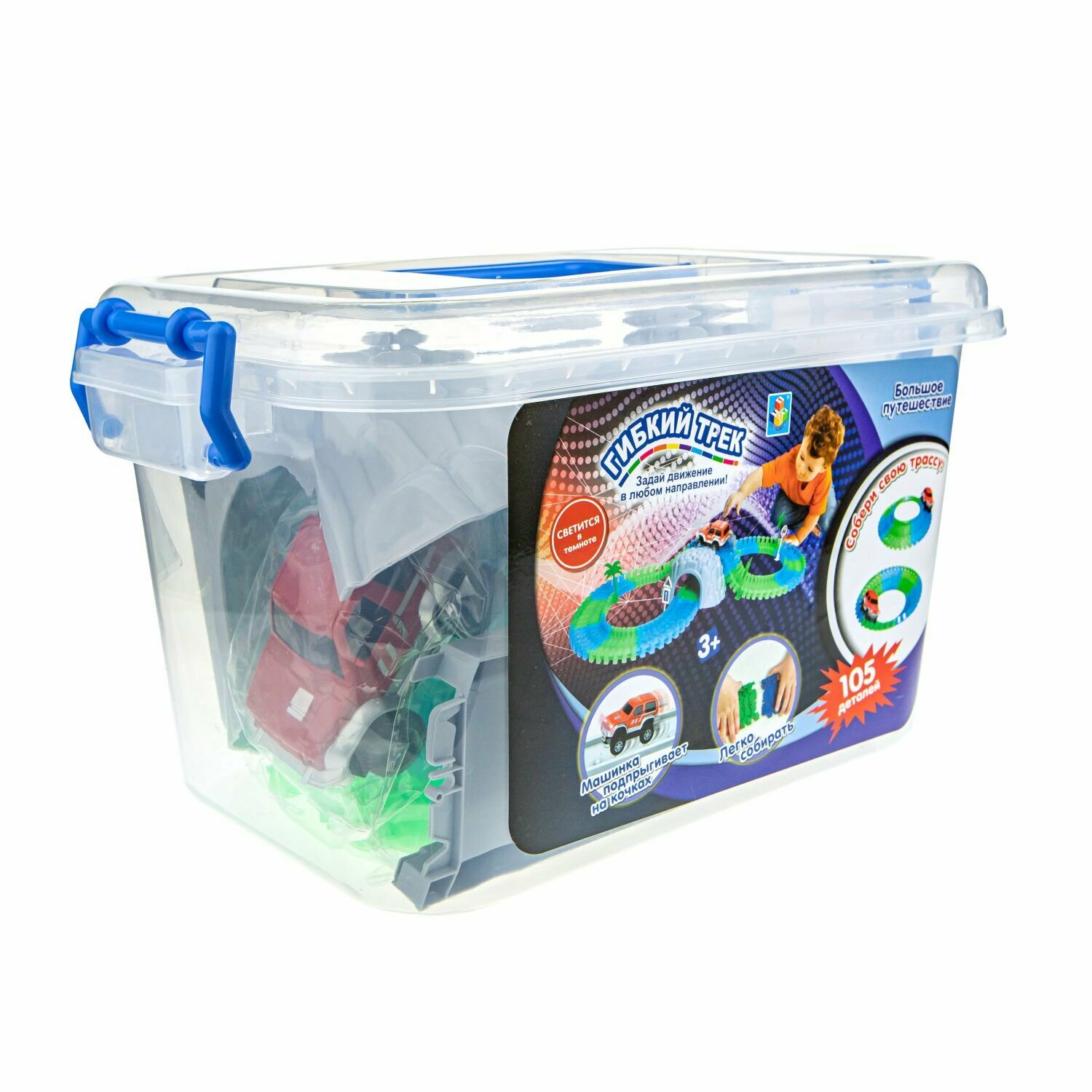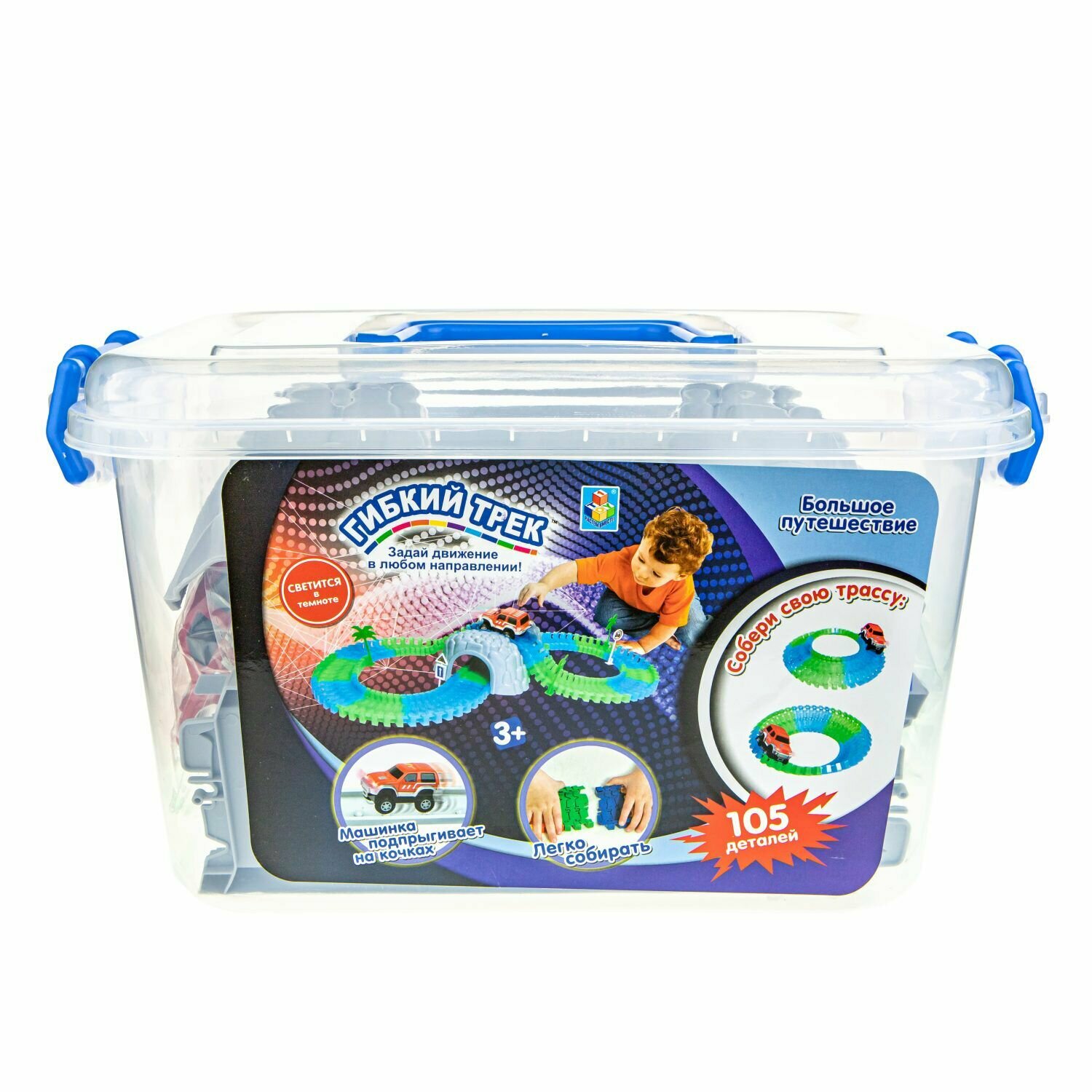 Гибкий трек "Большое путешестви" 105 деталей, светится в темноте, пластиковый короб информация: