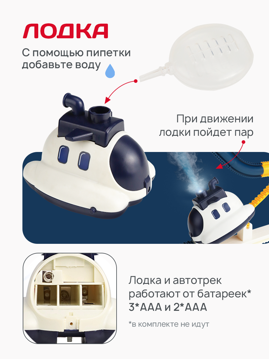 Автотрек с лодкой (86х29х32см) свет, пар, трамплин, лифт, на батарейках. Артикул Y26938003 информация: