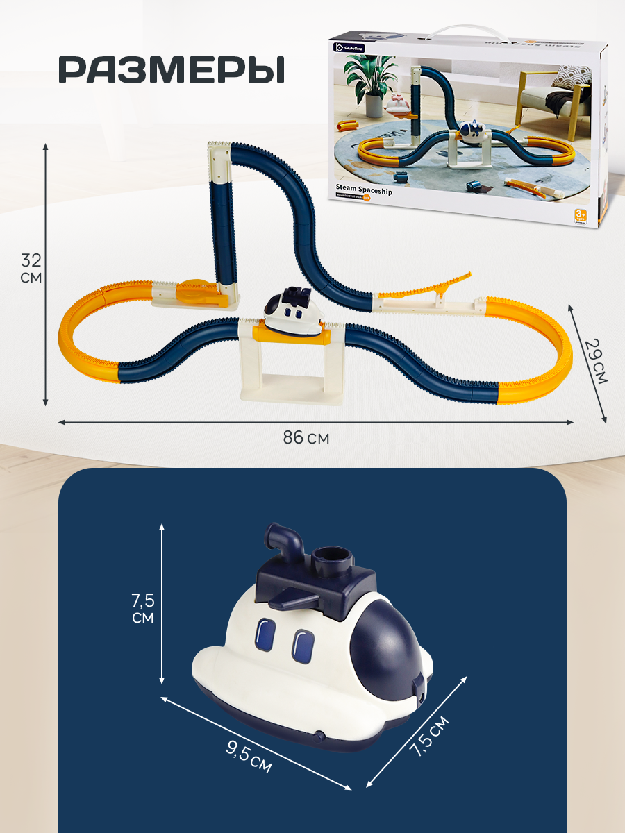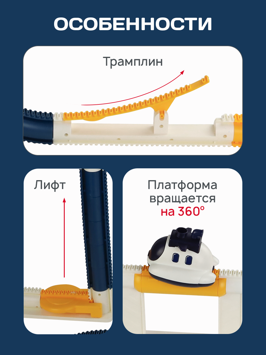 10 цен на Автотрек с лодкой (86х29х32см) свет, пар, трамплин, лифт, на батарейках. Артикул Y26938003