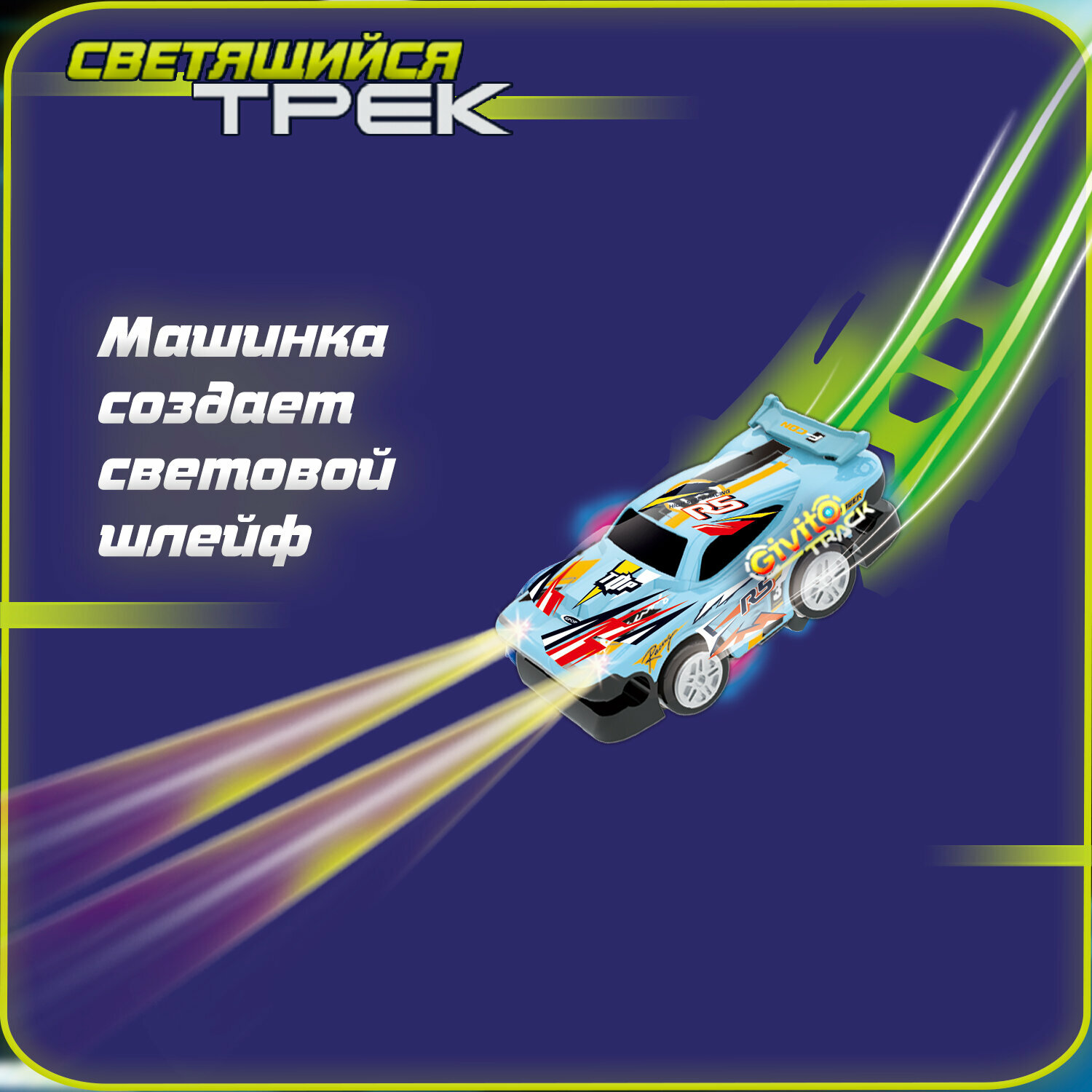 Детский гоночный светящийся гибкий автотрек Givito с машинкой (2 петли 360°), 63 детали G2412-495 2 690 ₽