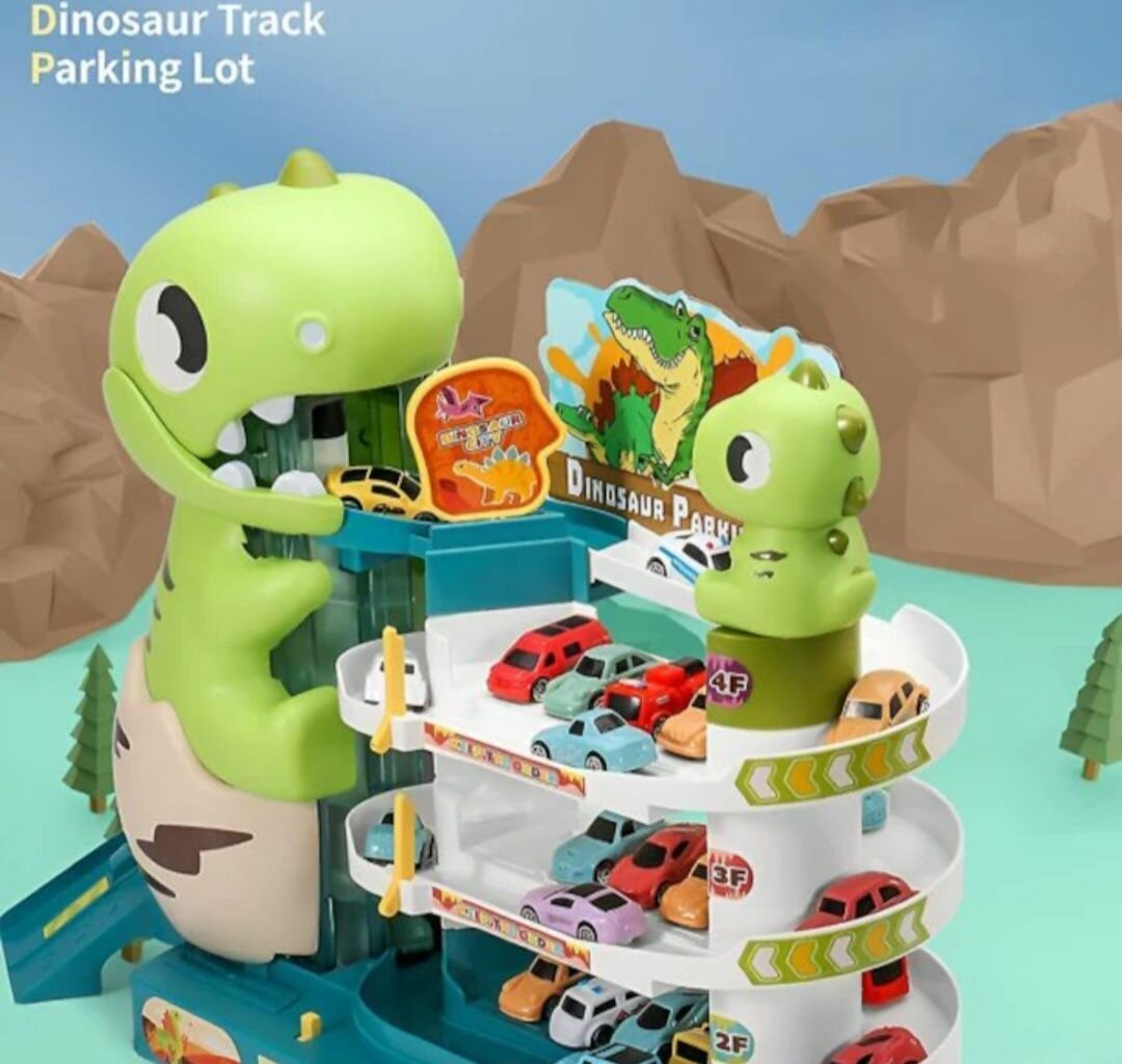 Отзывы на Автотрек "Маленькие динозавры", парковка для машинок, игрушка для детей, трек с машинками 4 штуки