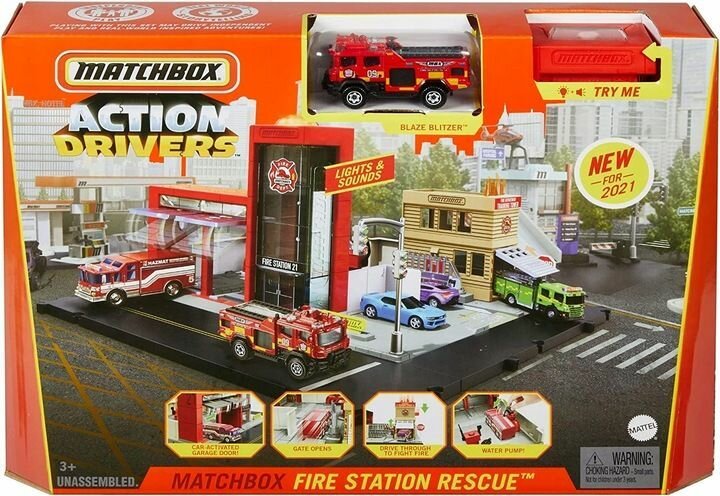 Игрушечный трек Matchbox Action Drivers - Игровой набор Пожарная станция + Пожарная машина HBD76 информация: